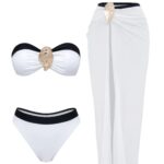 Beach Vacation Bikini Solid-Color 3-Piece Set Long Skirt Two-Piece Swimsuit Combo