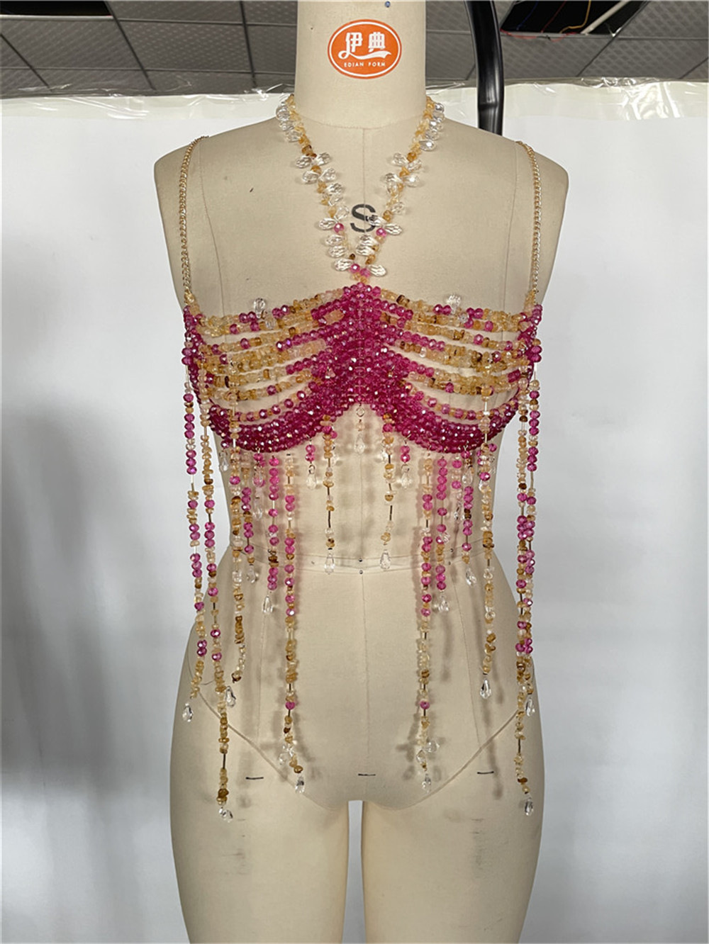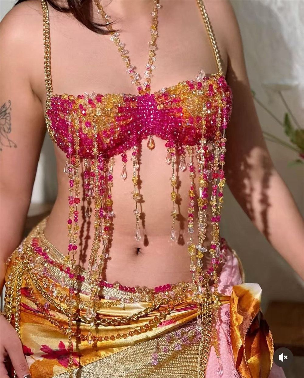 Beaded Spicy Girl Body Chain Cover-up Halter Top Layering Piece