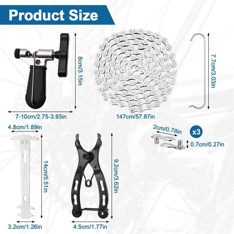 Bike Chain Tool Kit With 8 Speed Chain, Universal Bicycle Chain Repair Set Includes Bike Chain Tool Link Pliers Cutter Inspection Gauge & 3 Pairs Quick Links For Road & BMX Chain Maintenance
