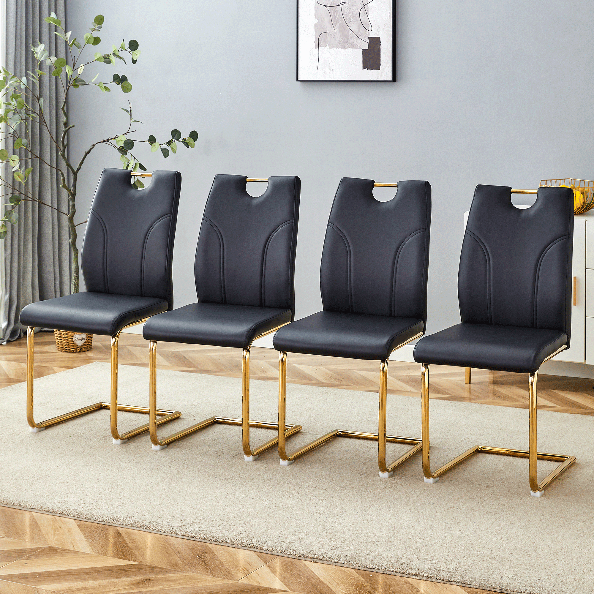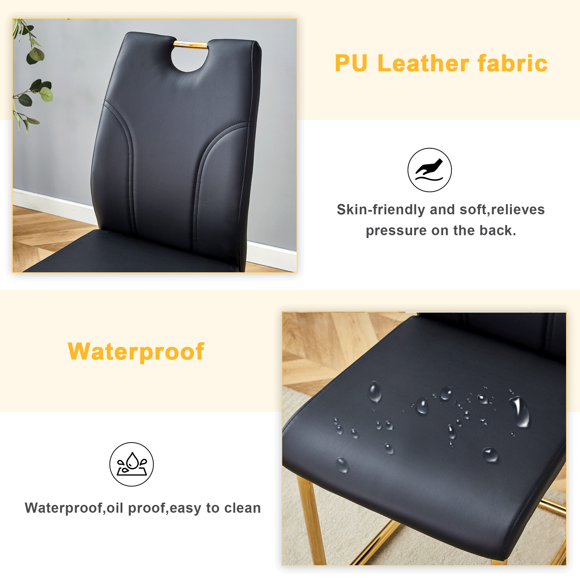 Black PU Dining Chair Set.Uniquely Designed Black Dining Chairs. PU Material, Paired With Gold Metal Chair Legs. Suitable For Offices, Restaurants, Kitchens, Conference Rooms, Etc. Set Of 4 is designed for style, comfort, and everyday use.