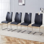 Black PU Dining Chair Set.Uniquely Designed Black Dining Chairs. PU Material, Paired With Silver Metal Chair Legs. Suitable For Offices, Restaurants, Kitchens, Conference Rooms, Etc. Set Of 4 is designed for style, comfort, and everyday use.