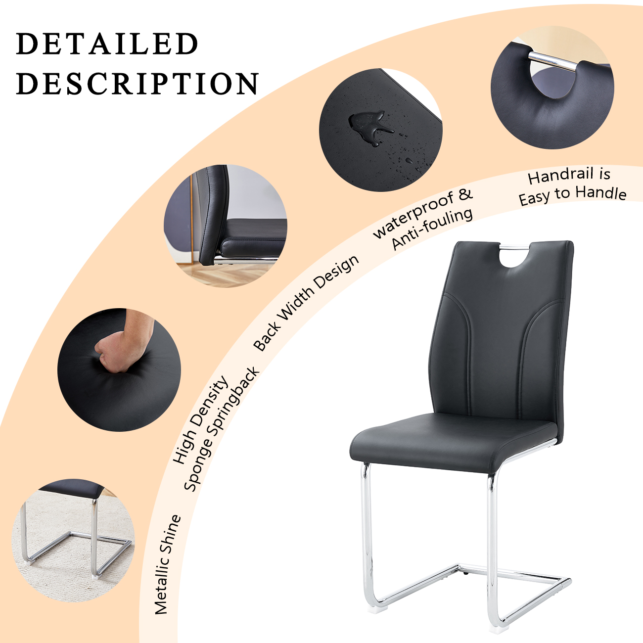 Black PU Dining Chair Set.Uniquely Designed Black Dining Chairs. PU Material, Paired With Silver Metal Chair Legs. Suitable For Offices, Restaurants, Kitchens, Conference Rooms, Etc. Set Of 4