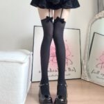 Black & White Velvet Bow Thigh High Socks, Garter Belt Style Over The Knee Stockings, Coquette Lolita Aesthetic Legwear For Women is designed for style, comfort, and everyday use.