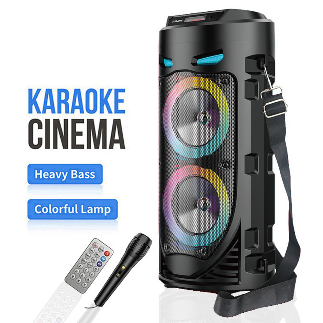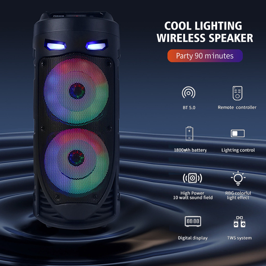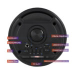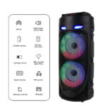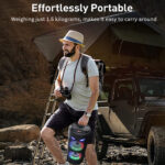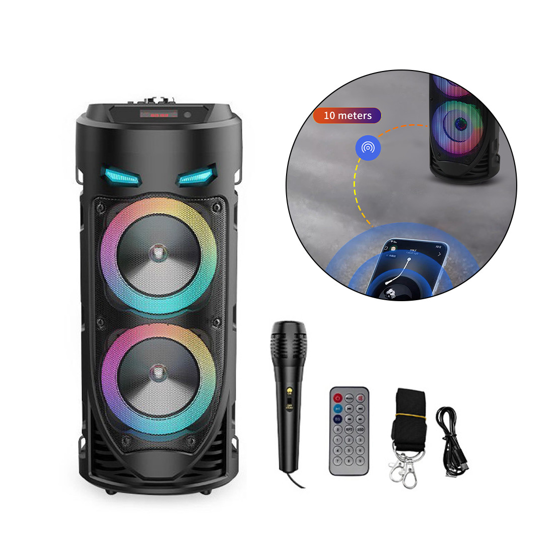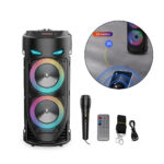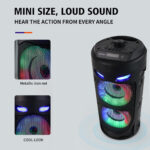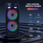-Bluetooth 5.0 Chip: Your favorite music will smoothly come out from the Bluetooth speaker. Blutooth 5.0 chip ensures lower consumption and a stable connection between the Bluetooth subwoofer and your smartphone, tablet or other Bluetooth-enabled device within 10m/32ft. No cable and no hassle. • -Heavy Bass: High-efficient 2×4″ woofer emits deep bass while the mids and highs remain loud and clear even when the volume increases. Crank up the volume, feel deep, natural low vibrations and have a blast at your party.  • -Vibrant  Party Lighting: Make your gatherings more exciting with built-in  modes LED lighting. You can enjoy the light show while listening to your favorite music, giving you an unforgettable karaoke experience, It light up the fiery party, and push the passion to a new level.