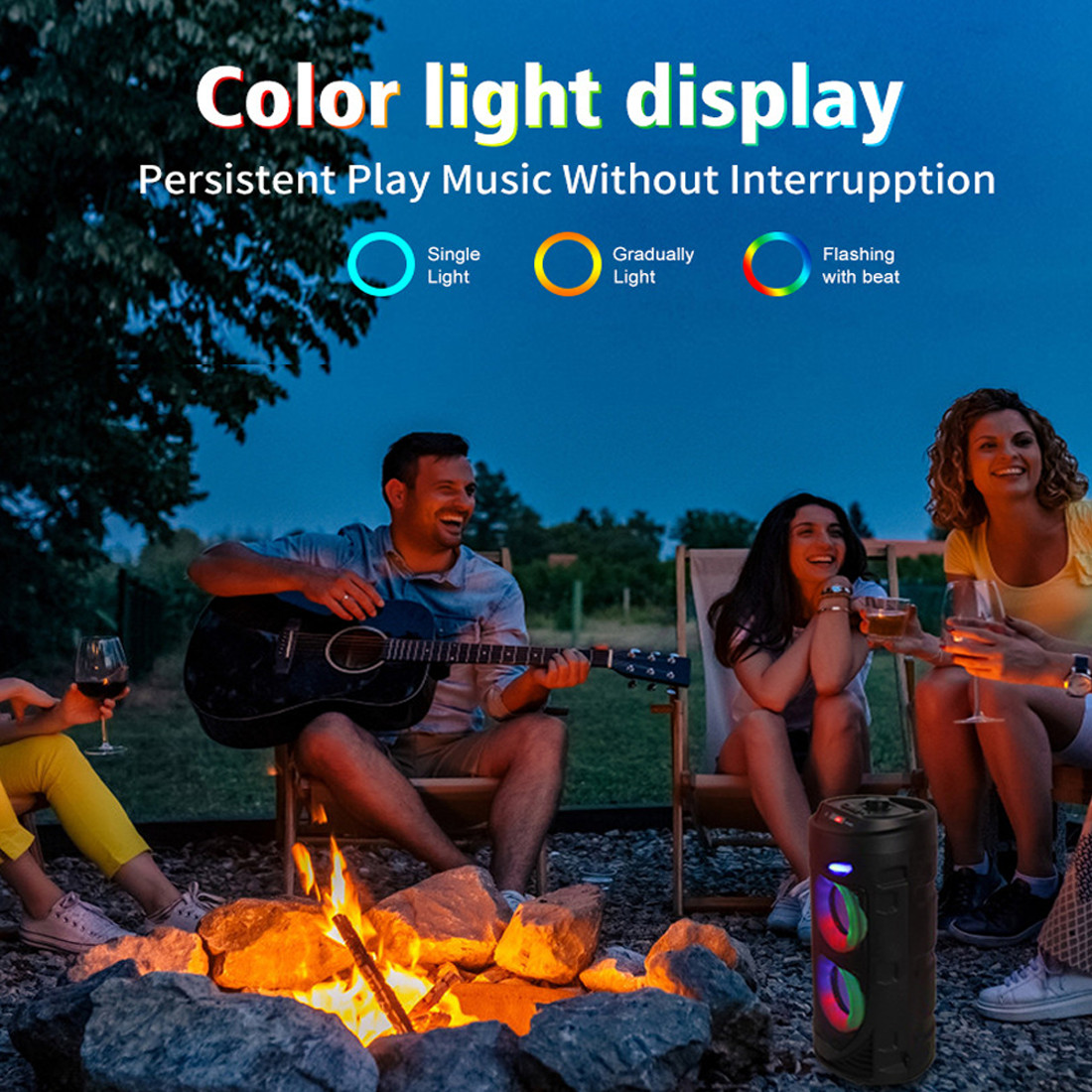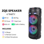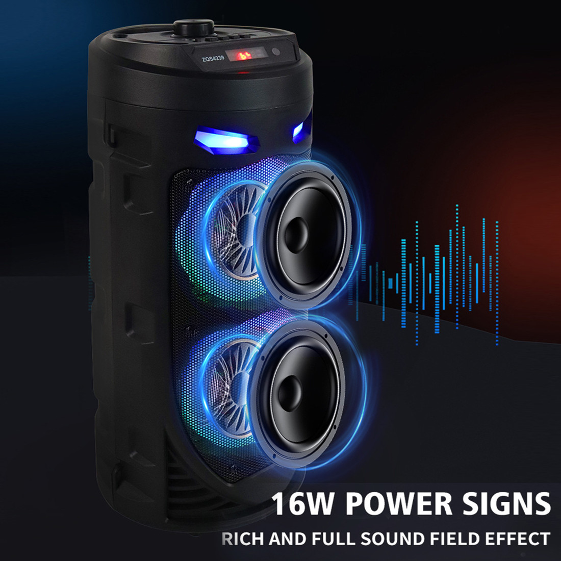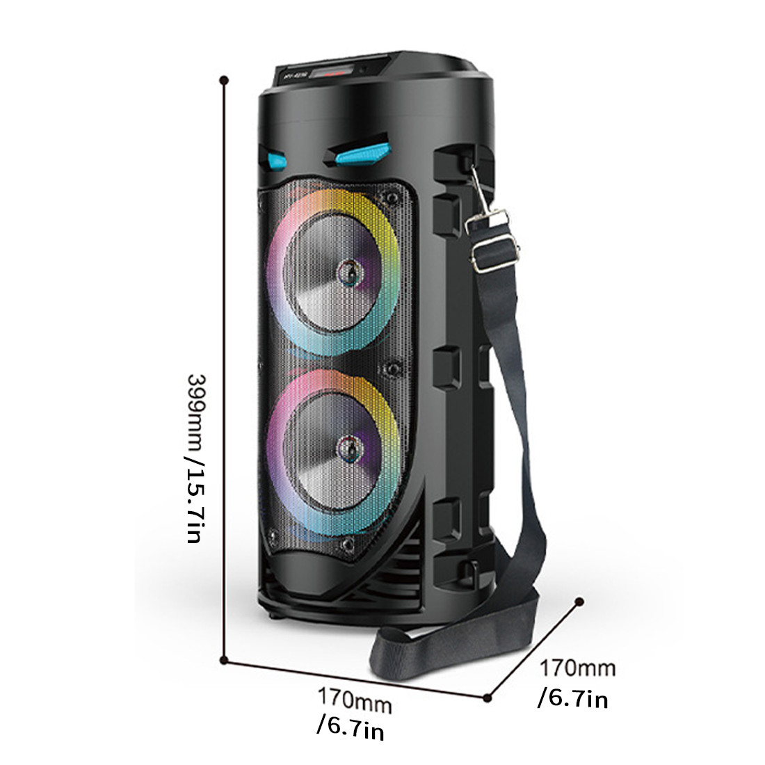 -Bluetooth 5.0 Chip: Your favorite music will smoothly come out from the Bluetooth speaker. Blutooth 5.0 chip ensures lower consumption and a stable connection between the Bluetooth subwoofer and your smartphone, tablet or other Bluetooth-enabled device within 10m/32ft. No cable and no hassle. • -Heavy Bass: High-efficient 2×4″ woofer emits deep bass while the mids and highs remain loud and clear even when the volume increases. Crank up the volume, feel deep, natural low vibrations and have a blast at your party.  • -Vibrant  Party Lighting: Make your gatherings more exciting with built-in  modes LED lighting. You can enjoy the light show while listening to your favorite music, giving you an unforgettable karaoke experience, It light up the fiery party, and push the passion to a new level.