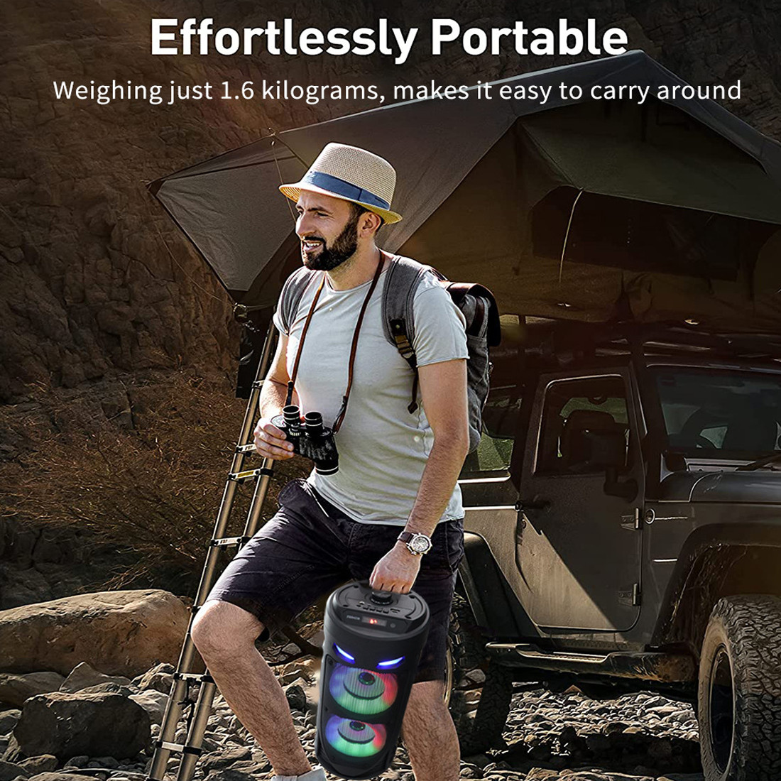 • -Portability at its Finest: This outdoor portable bluetooth speaker includes an adjustable shoulder strap for easy portability, designed for active families and people on the move and makes it easy to bring your tunes wherever you go.