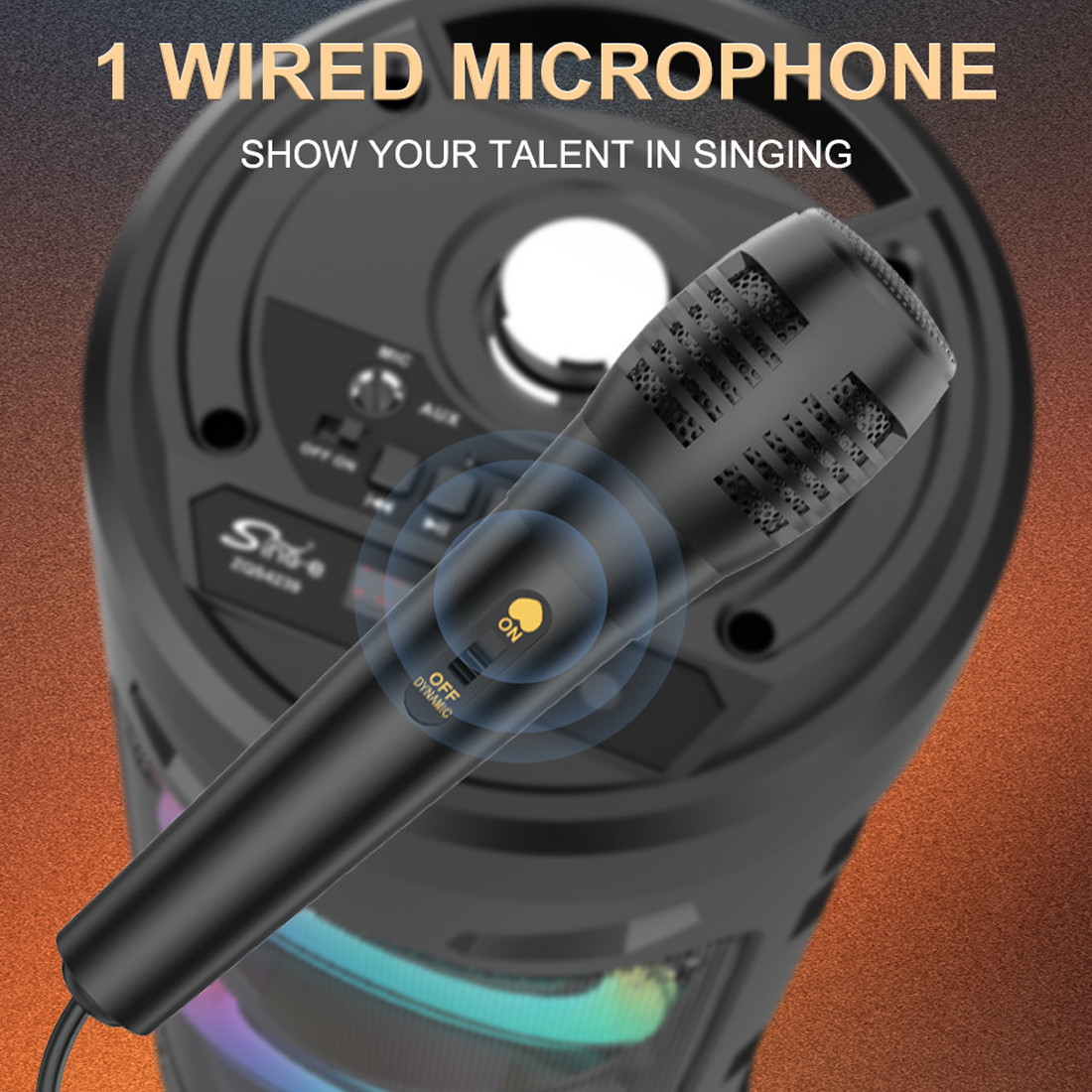 • -Karaoke Input: When connected to the provided wired microphone, it can provide Karaoke function, allowing you to enjoy singing whether you are providing live streaming or joining in a party. Do not put the open microphone near the speaker to avoid loud noise.