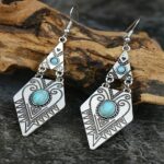 Bohemian Creative Geometric Rhombus Gemstone-Inlaid Alloy Earrings
