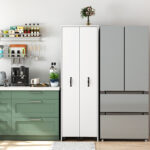 Bookcase With Two Pulled Out Doors Shelving Cabinet,4 Tier Floor Standing Bookcase,Slide Out Storage Bookcase File Cabinet,Office Bedroom Living Room Hidden Storage Cabinet With Wheels