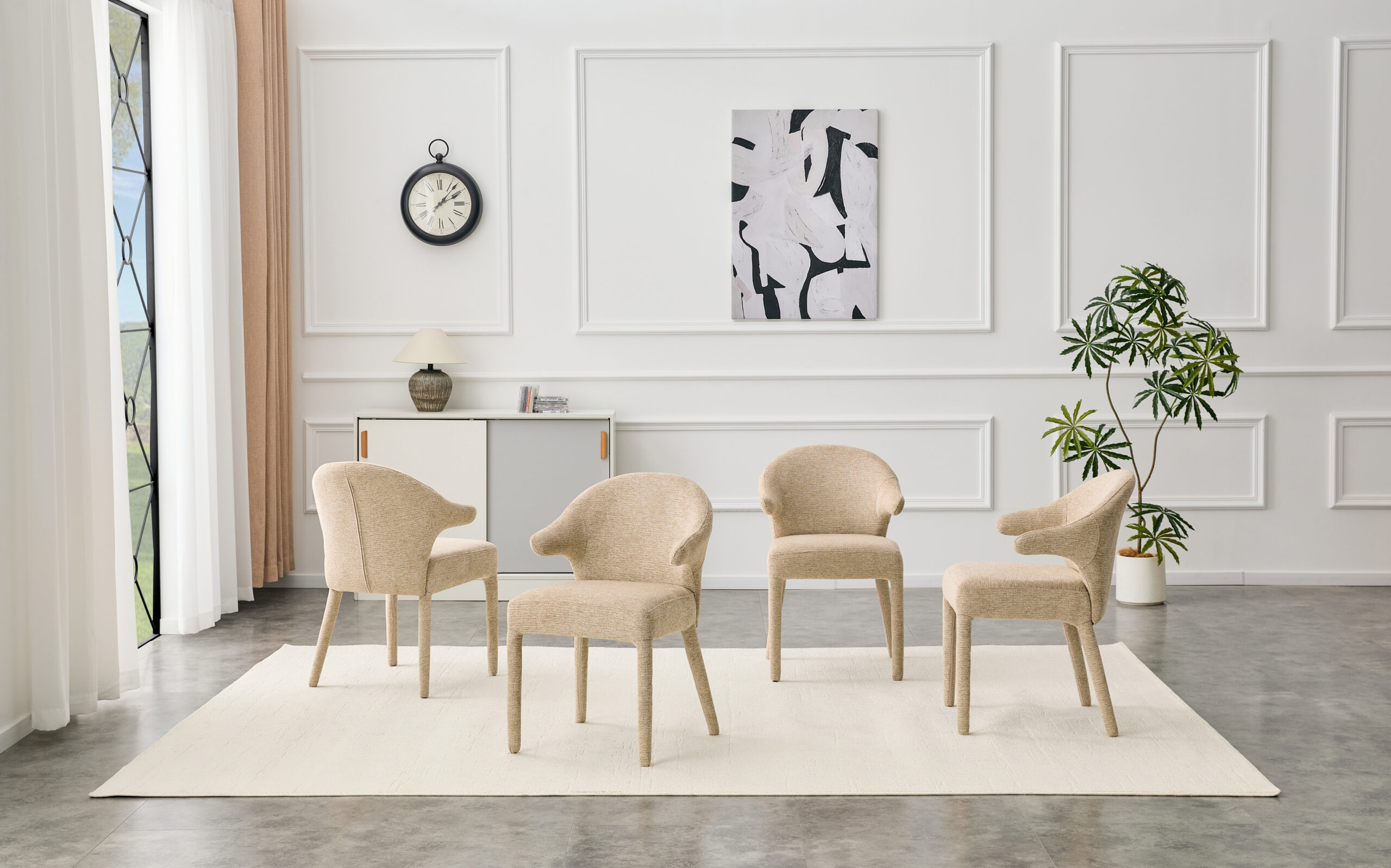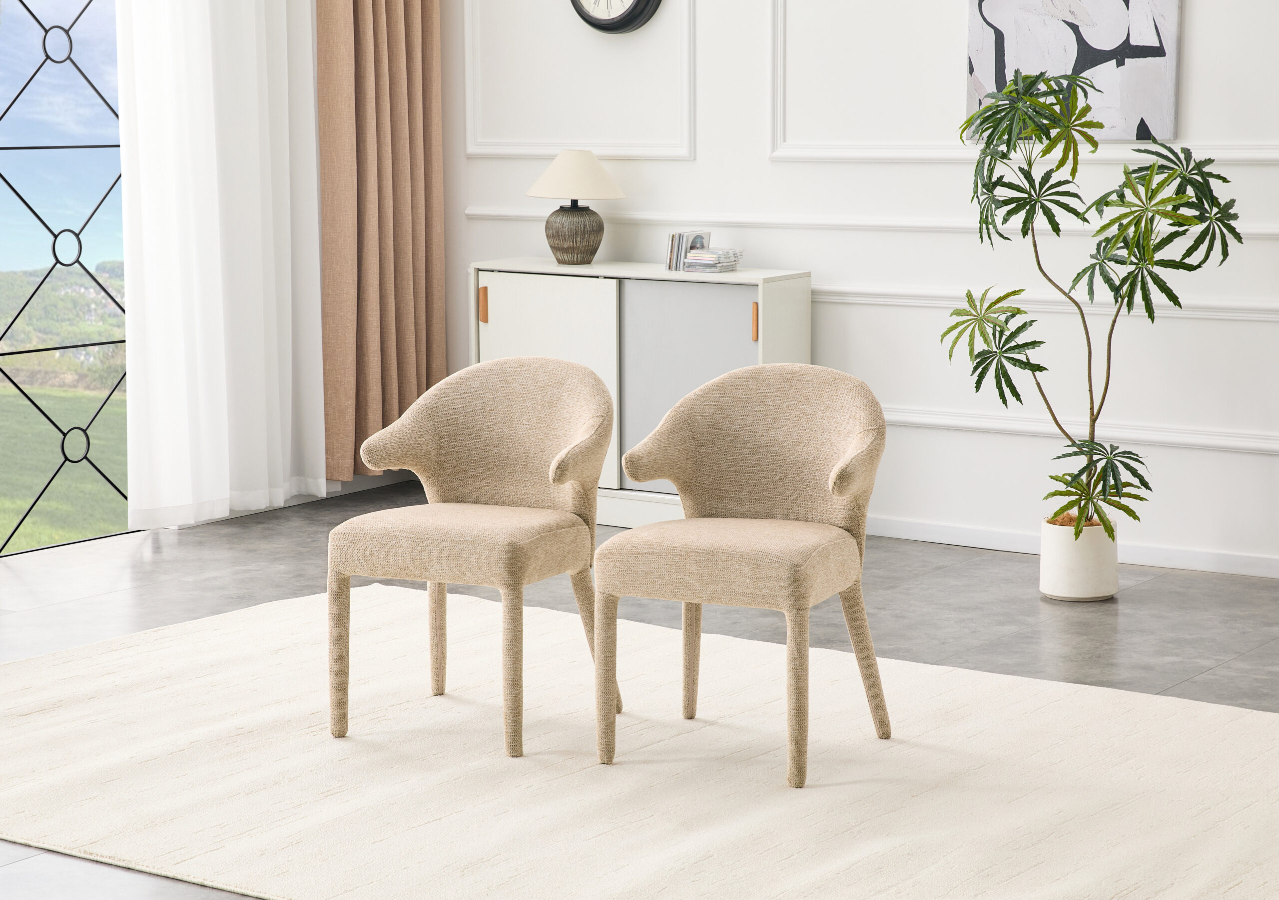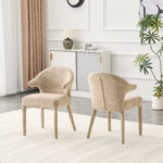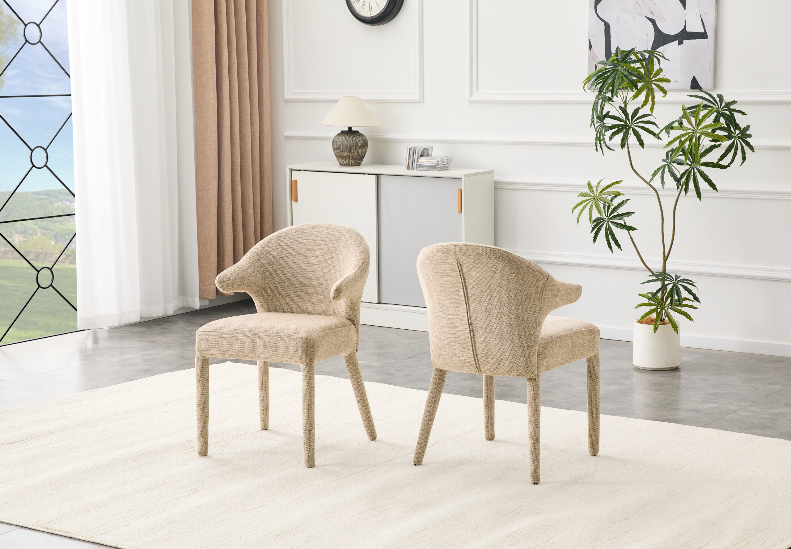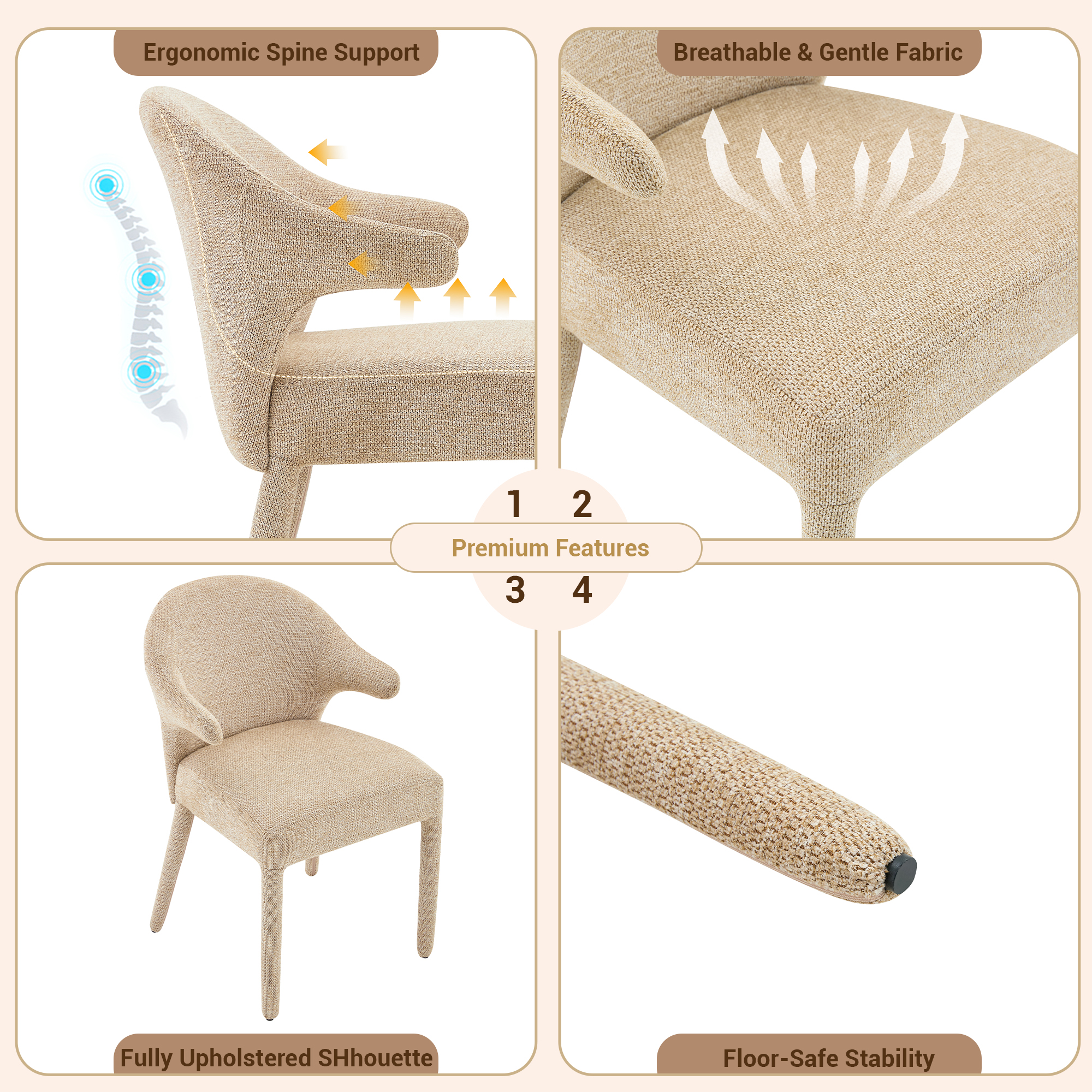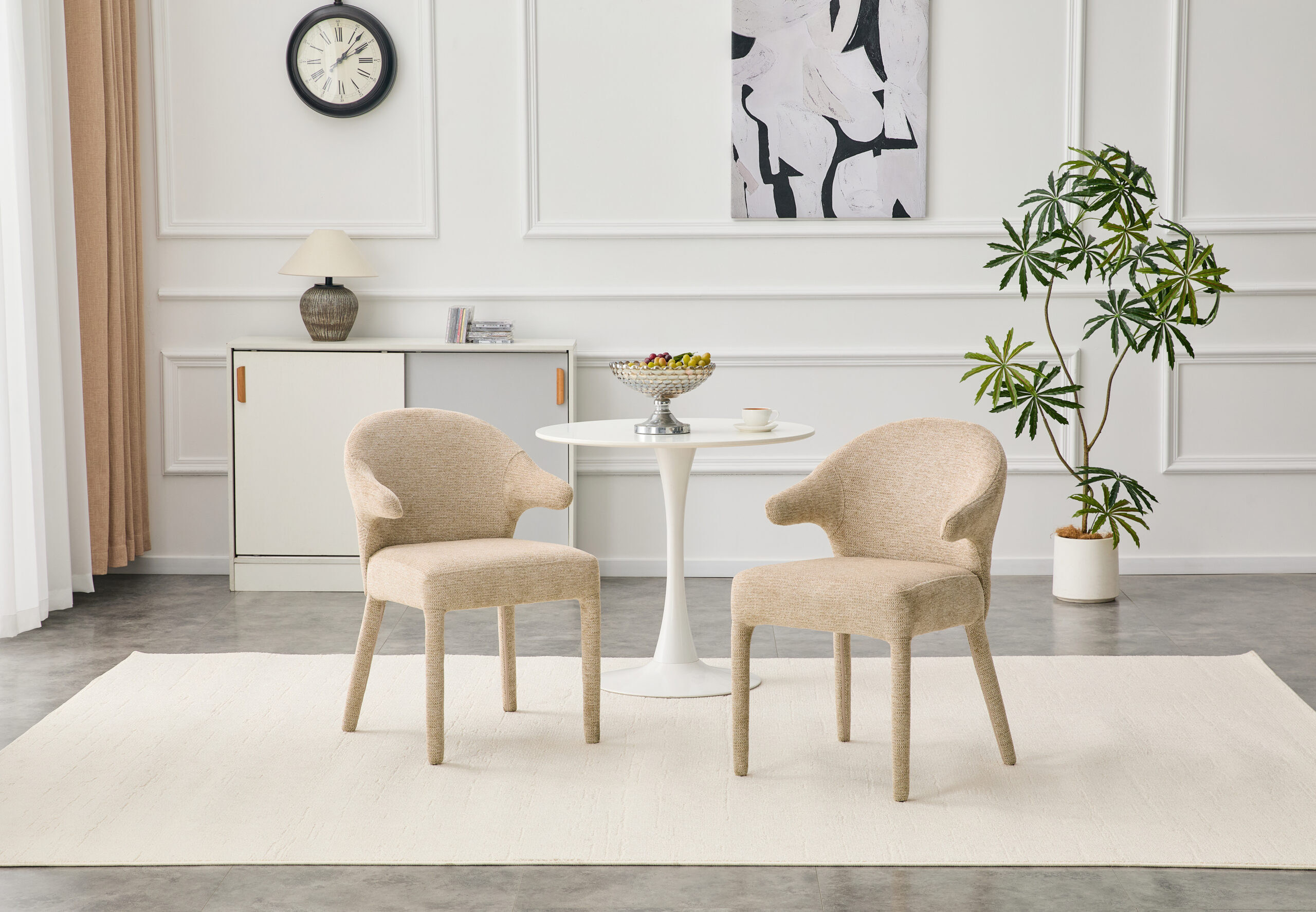 - Single Box ProductProduct Name:Boucle Fabric Hug Chair – Upholstered Armchair with High-Resilience Sponge & Metal Legs, Suitable for Hotel, Dining Room, Cafe, Study & Bedroom (Khaki, Set of 2)Main Color:khakiMain Material:BoucleFiller:Fiber Foam PadsProduct Style:ModernUse Case:Dining RoomChair Type:Dining ChairsPattern:SolidChair Back Style:Solid BackChair Upholstery Material:MetalChair Shape:SquareChair Fill Material:SpongeChair Care Instructions:Dry CleanSeating Quantity:Set of 2Product DimensionsAssembled Length (in.):24.41Assembled Width (in.):23.23Assembled Height (in.):33.07Product Weight (lbs.):16.09Package SizeLength (in.):36.61Width (in.):21.65Height (in.):20.87Weight (lbs.):37.91Product Features[ULTIMATE RESILIENCE & LONG-LASTING COMFORT] SAY GOODBYE TO SAGGING – Featuring a multi-layer cushion with high-resilience sponge and a built-in independent spring pack. This advanced structure ensures superior support and rapid rebound, preventing deformation even after years of daily use. Experience a firm yet plush seat that remains as comfortable as day one.[BREATHABLE SKIN-FRIENDLY LINEN FABRIC] ALL-SEASON FRESHNESS – Upholstered in premium linen fabric that is exceptionally soft, skin-friendly, and highly breathable. The natural texture allows for excellent airflow, keeping you cool and dry during summer while providing a cozy touch in winter. Perfect for sensitive skin and long-duration sitting.[ERGONOMIC WRAP-AROUND CURVED BACKREST] A SENSE OF SECURITY – The unique hugging-style curved backrest provides a deep sense of security and ergonomic support. It perfectly cradles your body, reducing back fatigue while adding a sophisticated designer look to your dining or living area. A perfect blend of safety and modern aesthetics.[MINIMALIST INTEGRATED ARMREST & VERSATILE STYLE ] ELEVATE YOUR HOME DECOR – Featuring a sleek, full-wrap minimalist silhouette with integrated armrests. This seamless design perfectly complements Modern Luxury, Creamy Minimalist (Cream Style), and Nordic home decors. It’s not just a chair, but a statement piece that elevates your interior aesthetic.[REINFORCED IRON PLATE FIXING & ROCK-SOLID LEGS] INDUSTRIAL-GRADE STABILITY – Engineered with thickened iron plate connections for the legs, offering exceptional durability and stability. This heavy-duty construction ensures a wobble-free experience and a high weight capacity, providing a safe and reliable foundation for your family and guests.[NON-SLIP STABILITY & FLOOR PROTECTION ] SCRATCH-FREE PEACE OF MIND – Equipped with high-quality non-slip bottom pads to ensure maximum stability on any surface. These protective corners prevent the chair from sliding and shield your hardwood or tiled floors from unsightly scratches and noise, ensuring a quiet and safe home environment.DescriptionsLUXURY CREAM STYLE DINING CHAIR WITH SPRING PACKElevate your home with our Modern Dining Chair, where “Cream Style” aesthetics meet ultimate comfort. The sleek, full-wrap silhouette with integrated armrests fits any decor, from minimalist apartments to luxury rooms. Its multi-layer cushion combines high-resilience sponge with an independent spring pack, providing plush support that resists deformation for years.