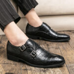 British-style Mens Leather Shoes With A Square Toe And Embossed Pattern is designed for style, comfort, and everyday use.