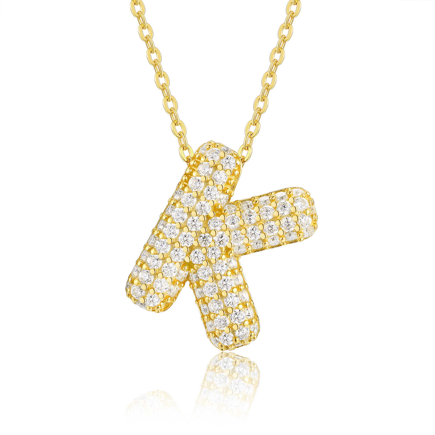 Bubble Letter – K Set With Top-quality Moissanite, This Luxurious And Fashionable Light Luxury Trend Jewelry Silver Pendant Necklace Features S925 Silver Electroplated With Gold.