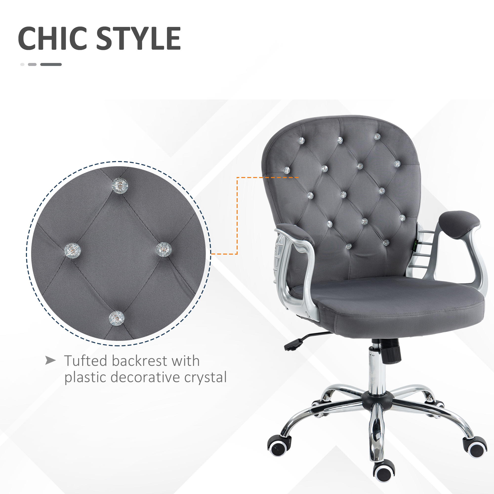 Button Tufted Desk Chair, Home Office Chair with Padded Armrests, Adjustable Height and Swivel Wheels, Dark Gray