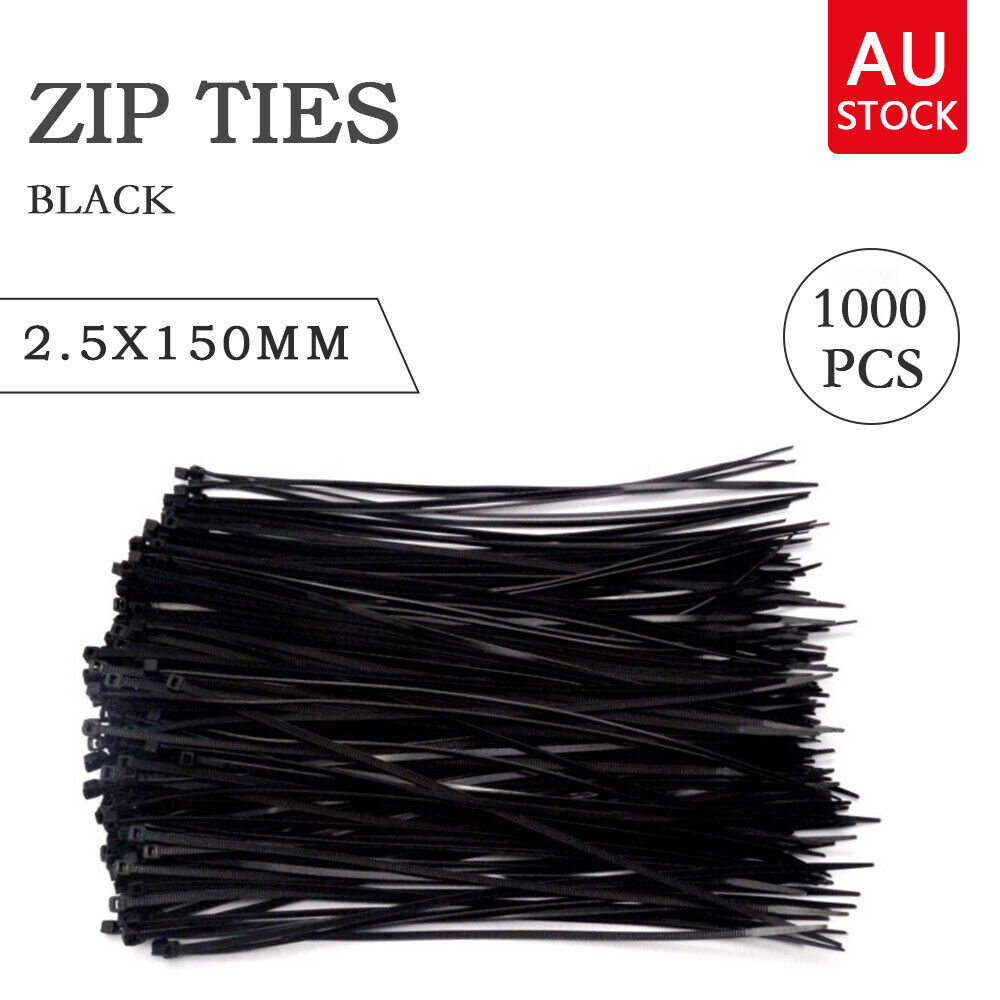 Cable Ties Zip Ties Nylon UV Stabilised 1 0 0 0pc Bulk Black Cable Tie 150mm X 2.5mm Pack