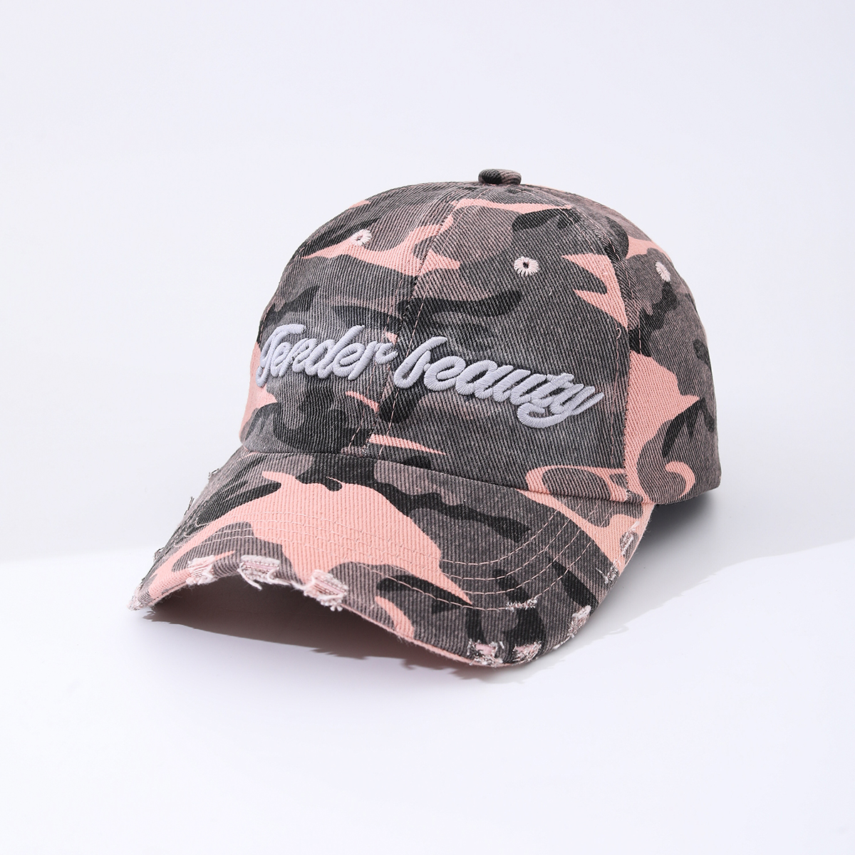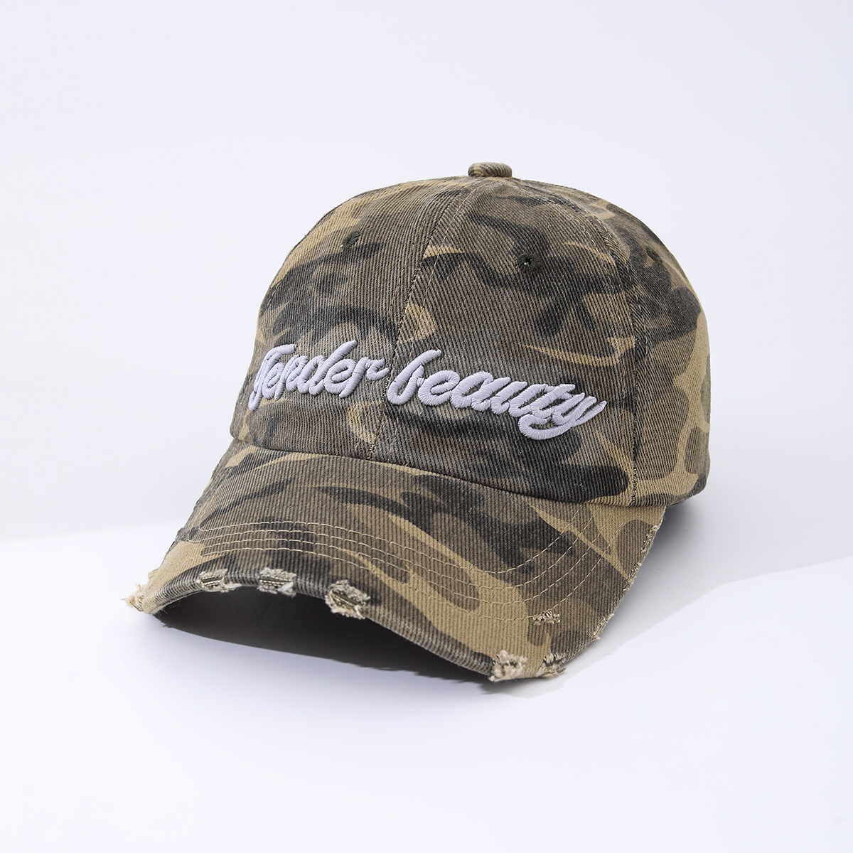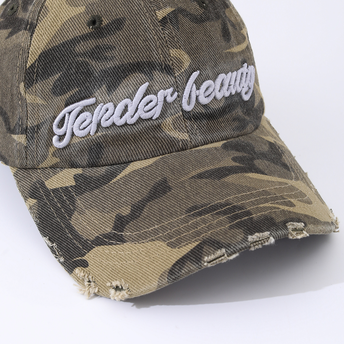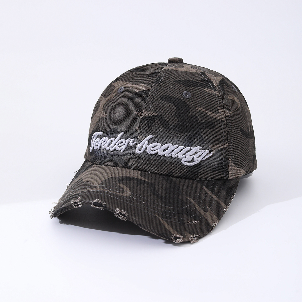 Camouflage Embroidered English Letters Beveled Frayed Washed Vintage Retro Casual Baseball Cap Suitable For Outdoor Activities, Street Dates is designed for style, comfort, and everyday use.