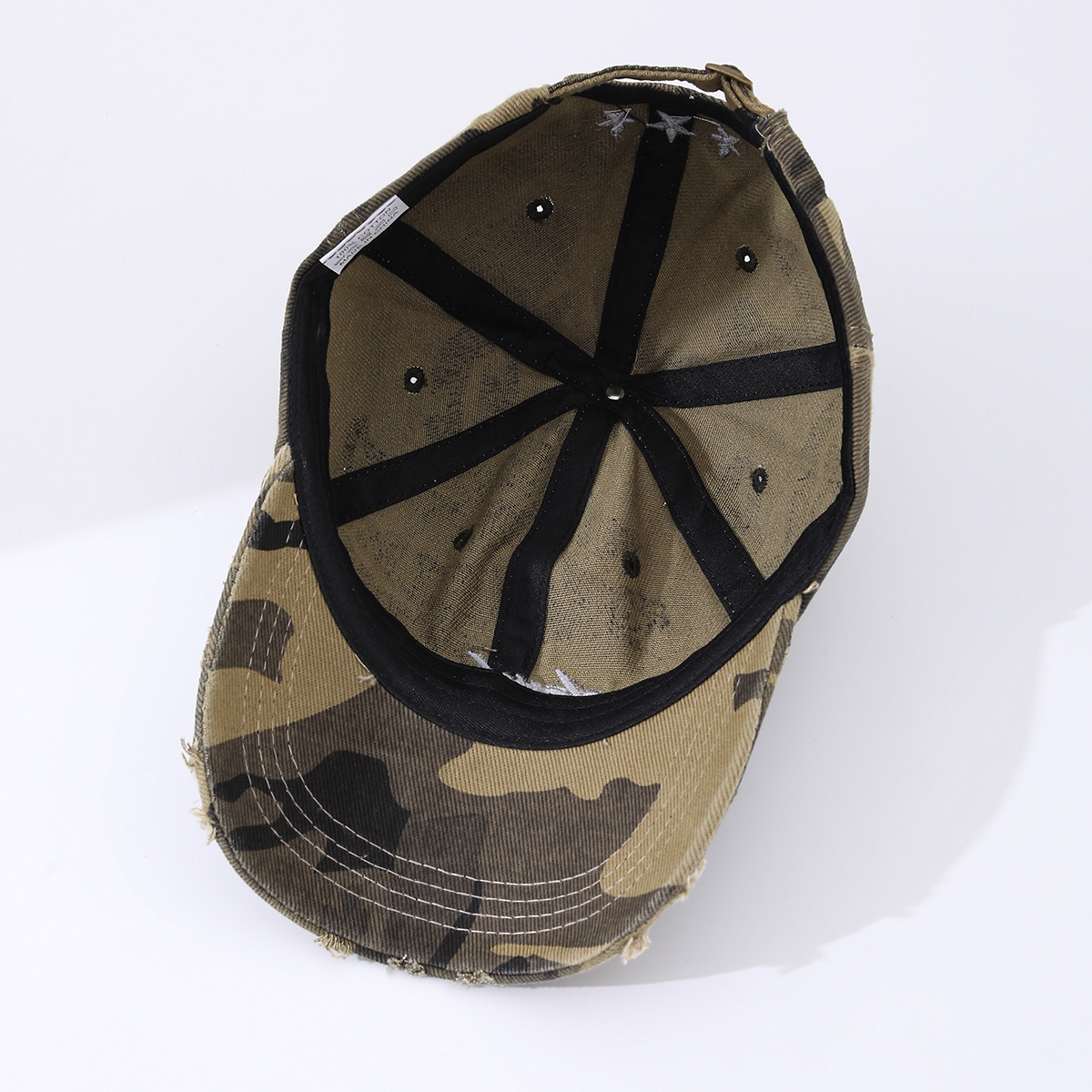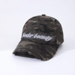 Be the first to review “Camouflage Embroidered English Letters Beveled Frayed Washed Vintage Retro Casual Baseball Cap Suitable For Outdoor Activities, Street Dates”