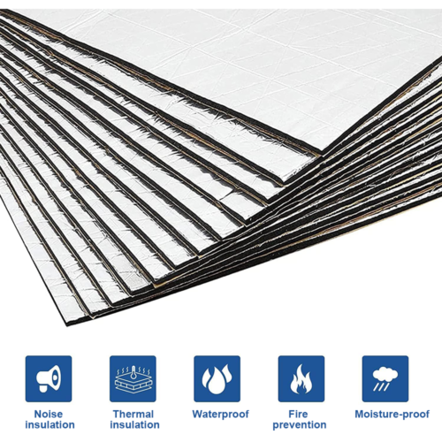 Sound deadening and thermal insulation foam for use within vehicle interior and exterior.Suitable for insulating the following applications: • Exterior bulkhead, firewall, hood, engine compartment, engine bays • Boot, wheel arch, body panels, load floor, under seat, floor, interior bulkhead.