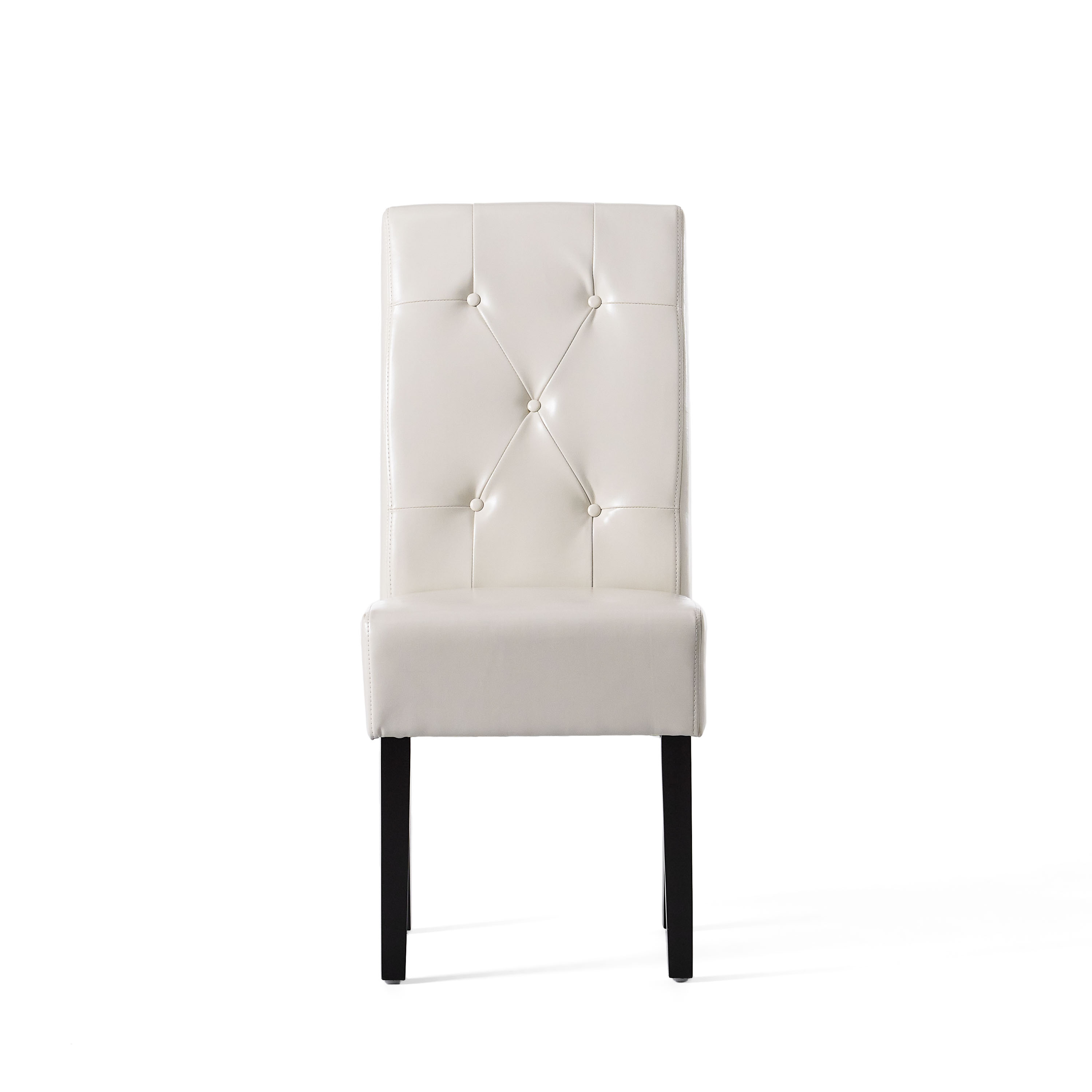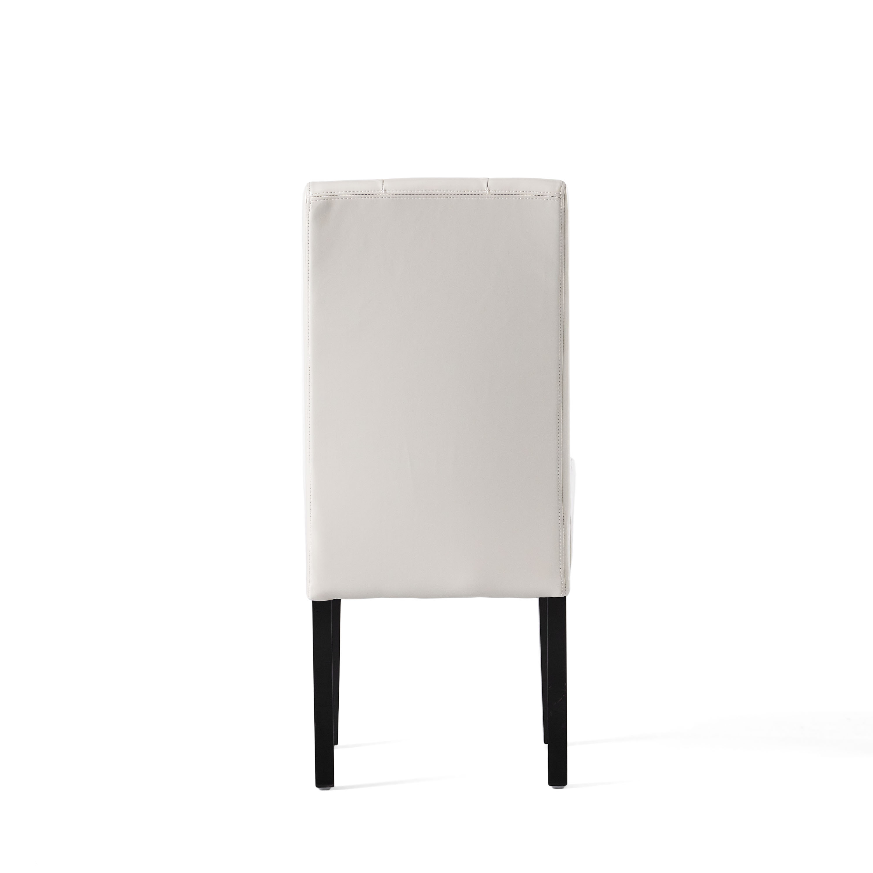 • Single Box ProductProduct Name:CARTER 5-TUFT KD DINING CHAIRMain Color:IvoryMain Material:Bonded LeatherProduct DimensionsAssembled Length (in.):17.75Assembled Width (in.):25.50Assembled Height (in.):39.50Product Weight (lbs.):2.20Package SizeLength (in.):40.50Width (in.):19.00Height (in.):15.50Weight (lbs.):43.94Product FeaturesBonded LeatherIncludes two (2) dining chairsSmooth ivory bonded leatherButton tufted backrestEspresso stained legs.Some assembly required