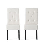 Single Box ProductProduct Name:CARTER 5-TUFT KD DINING CHAIRMain Color:IvoryMain Material:Bonded LeatherProduct DimensionsAssembled Length (in.):17.75Assembled Width (in.):25.50Assembled Height (in.):39.50Product Weight (lbs.):2.20Package SizeLength (in.):40.50Width (in.):19.00Height (in.):15.50Weight (lbs.):43.94Product FeaturesBonded LeatherIncludes two (2) dining chairsSmooth ivory bonded leatherButton tufted backrestEspresso stained legs.Some assembly required