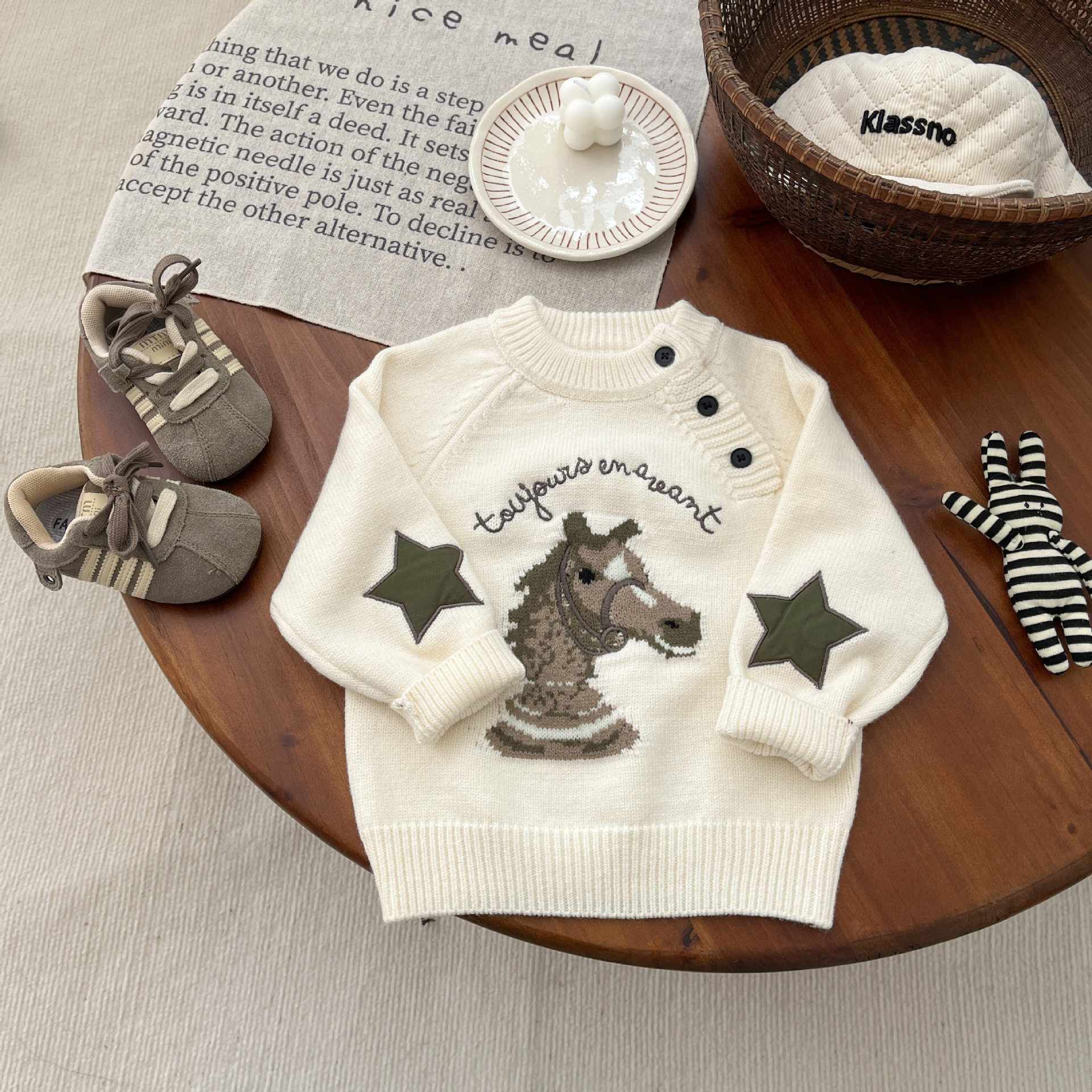 Cartoon Horse Year Knitted Sweater Children's Clothing Sweater