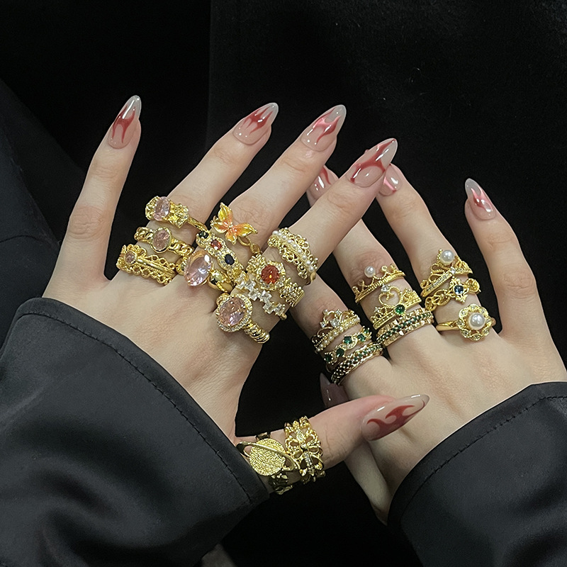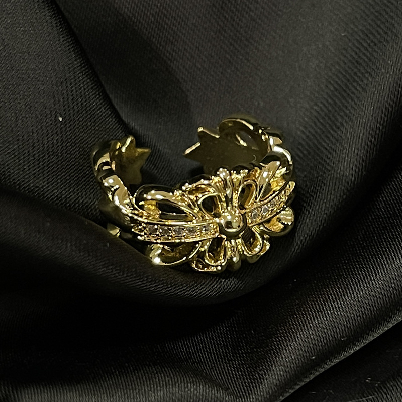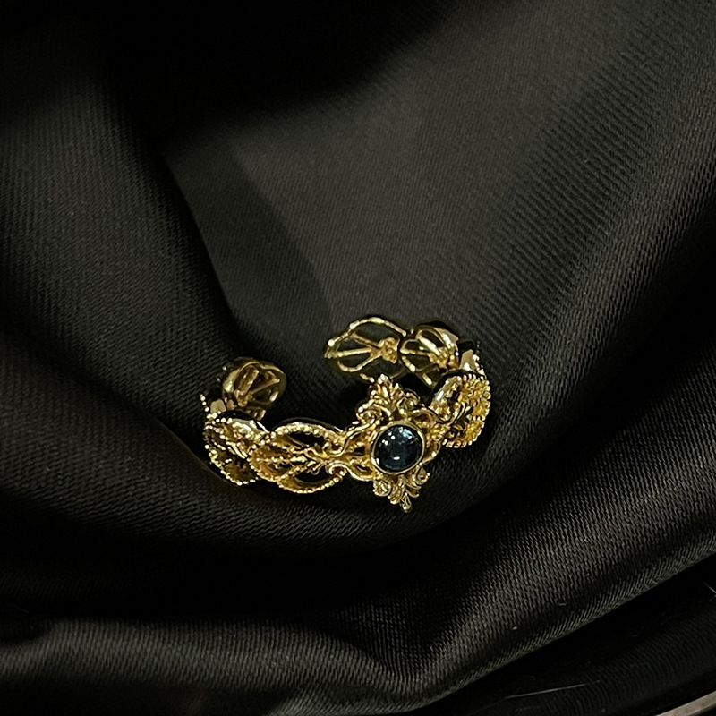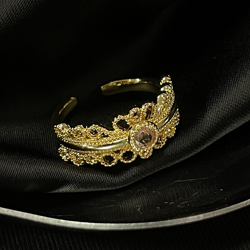 Carved Gold Series Retro Open Ring, Vintage High-end French Style, Niche Light Luxury Finger Band