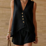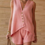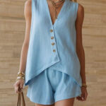 Be the first to review “Casual Cotton-Linen V-Neck Buttoned Sleeveless Top And Shorts Two-Piece Set”