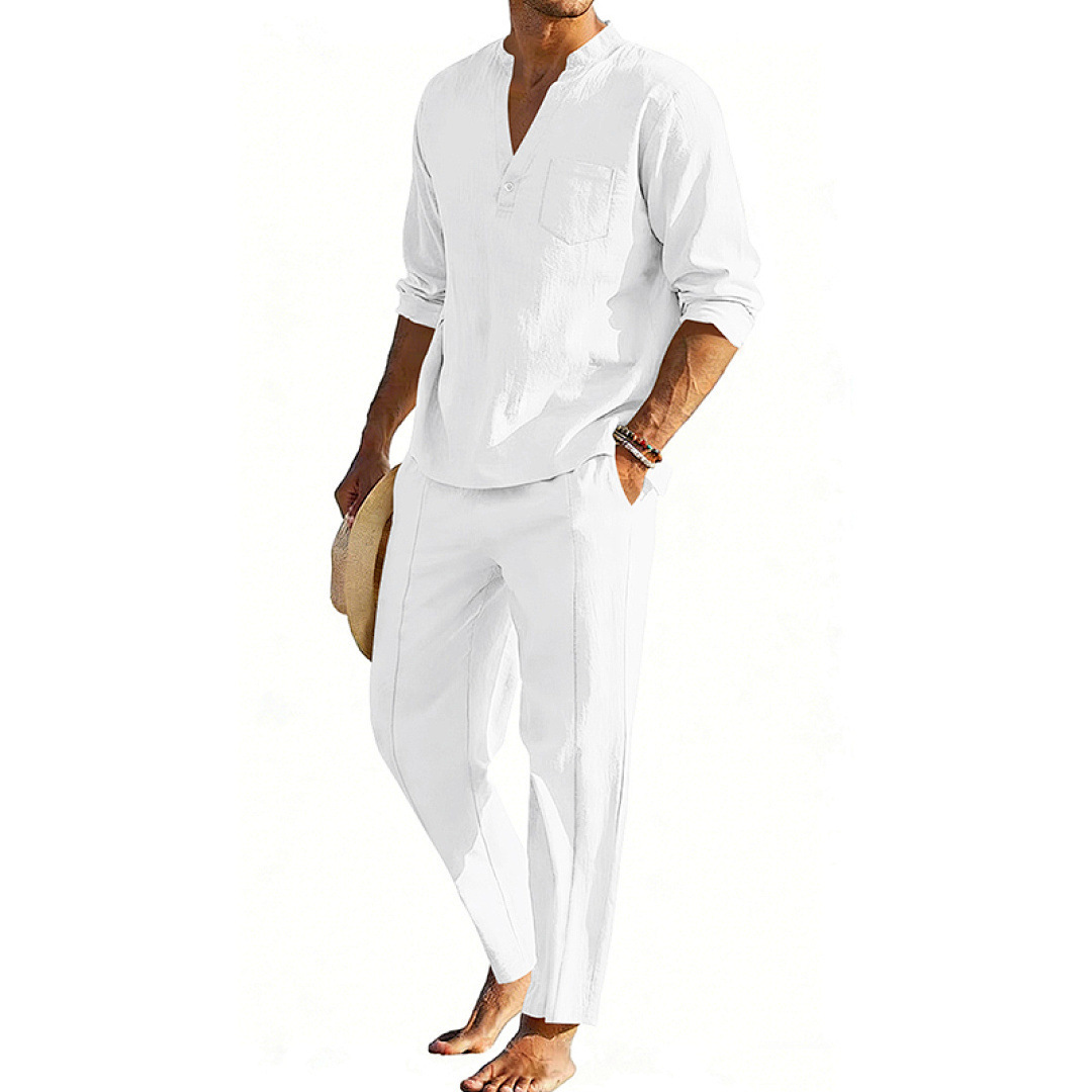 Casual Men’s Henley Long-Sleeve Straight-Leg Pants Set
