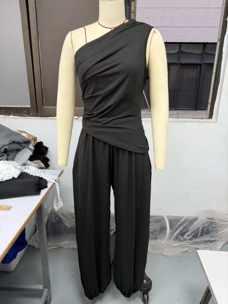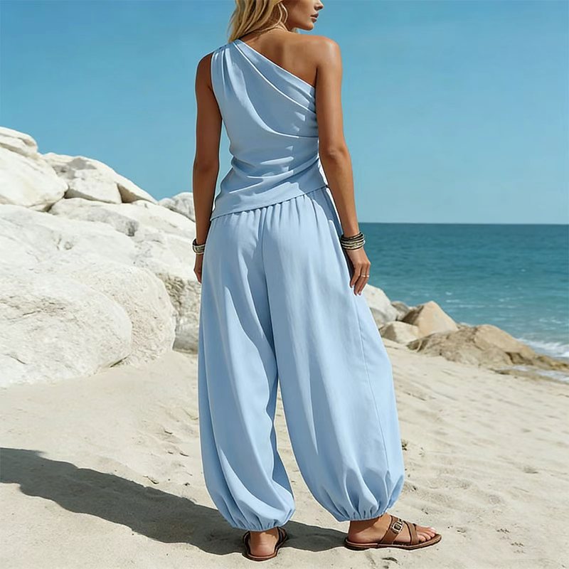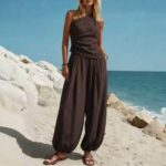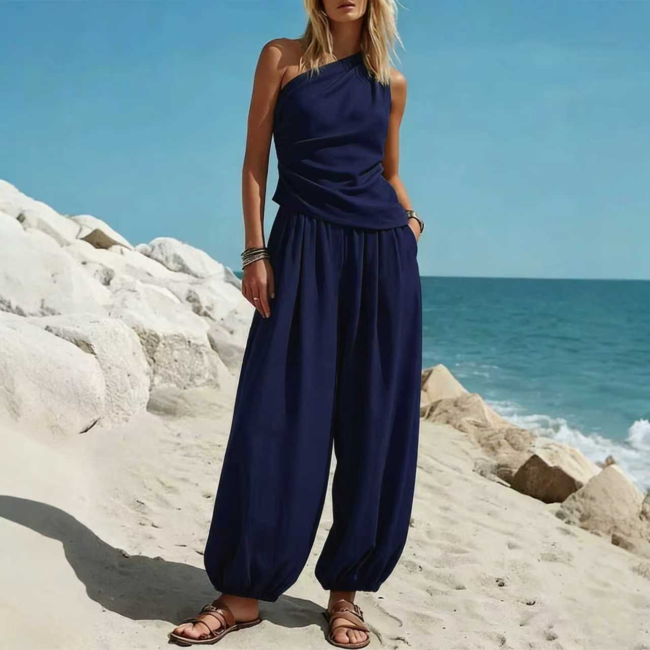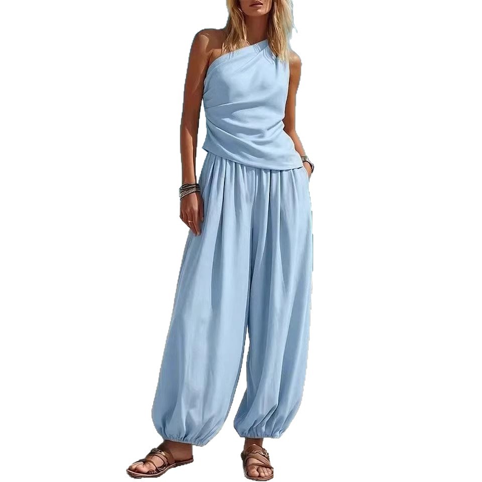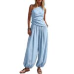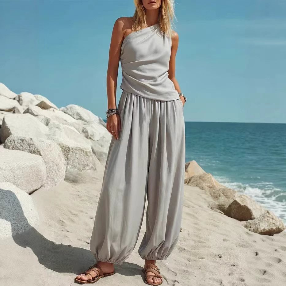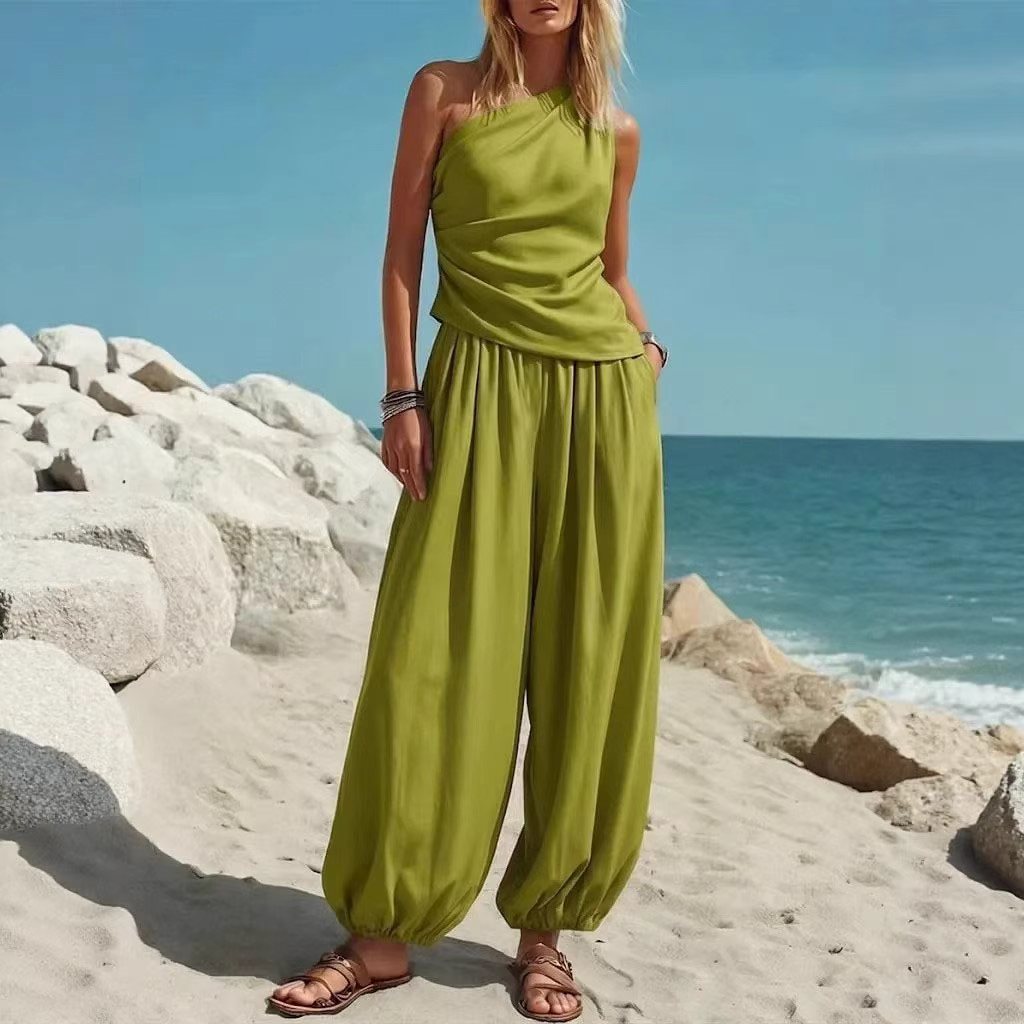 Be the first to review “Casual Minimalist Solid-Color Sleeveless Tank Top And Loose High-Waist Pants Set For Women”
