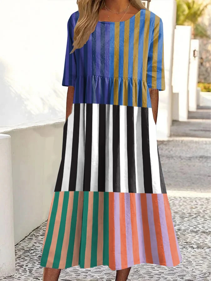 Casual Retro Ocean Art Print Womens Loose Dress