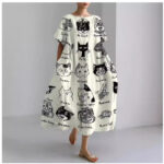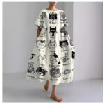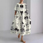Casual Round-Neck Fashionable Short-Sleeve Printed Dress For Cats