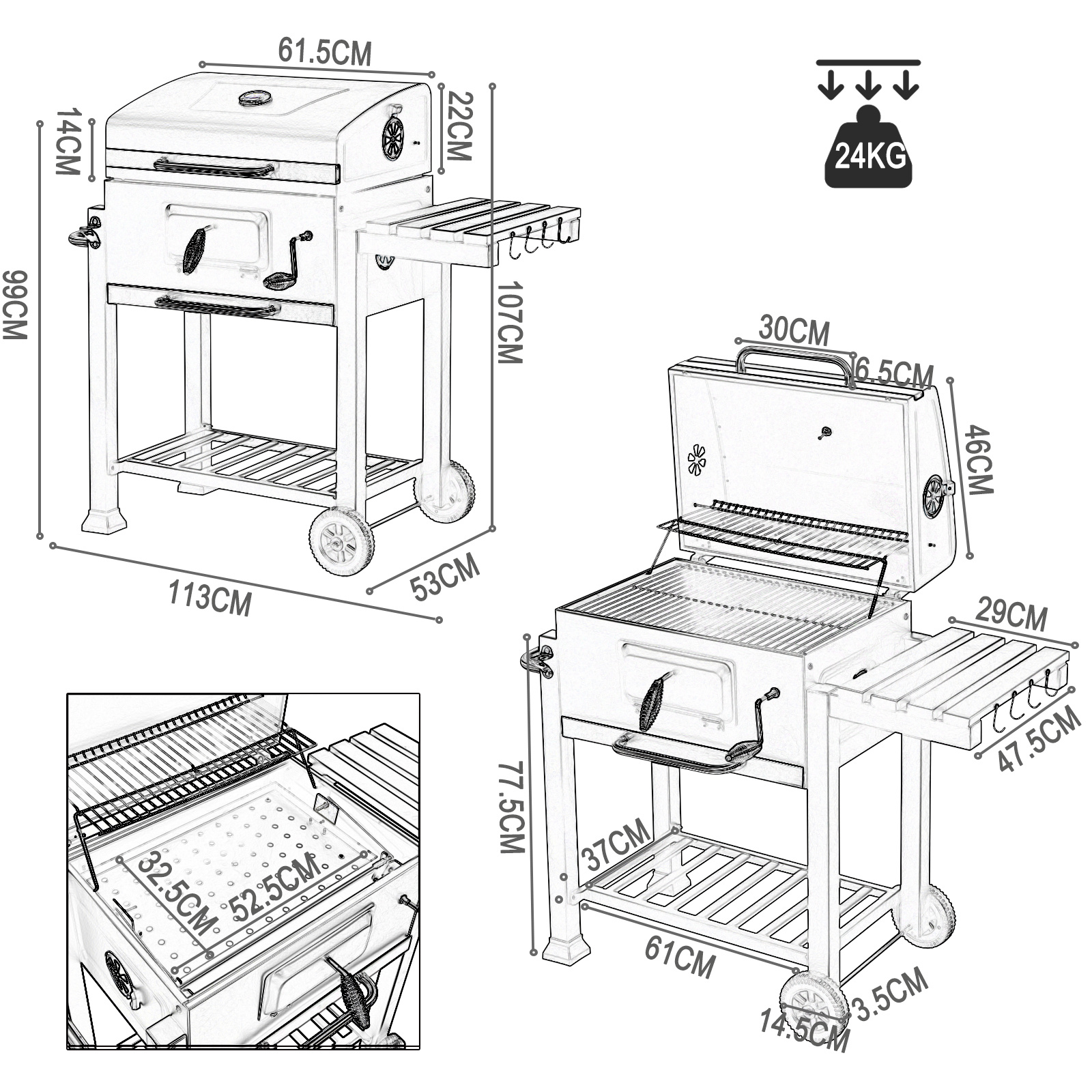 Charcoal Grill – Height-Adjustable Grill With Wheels, Suitable For Garden, Camping, And Picnics
