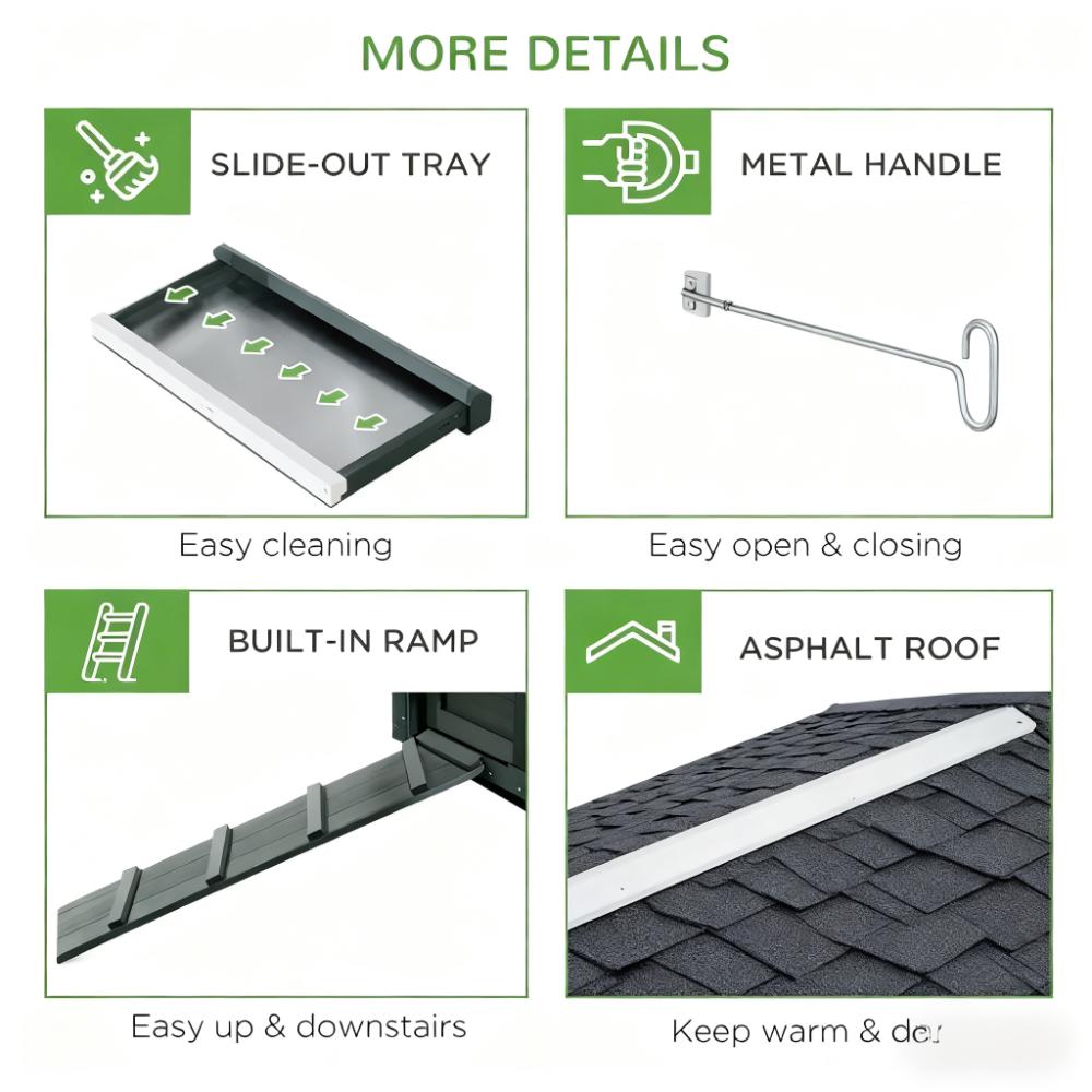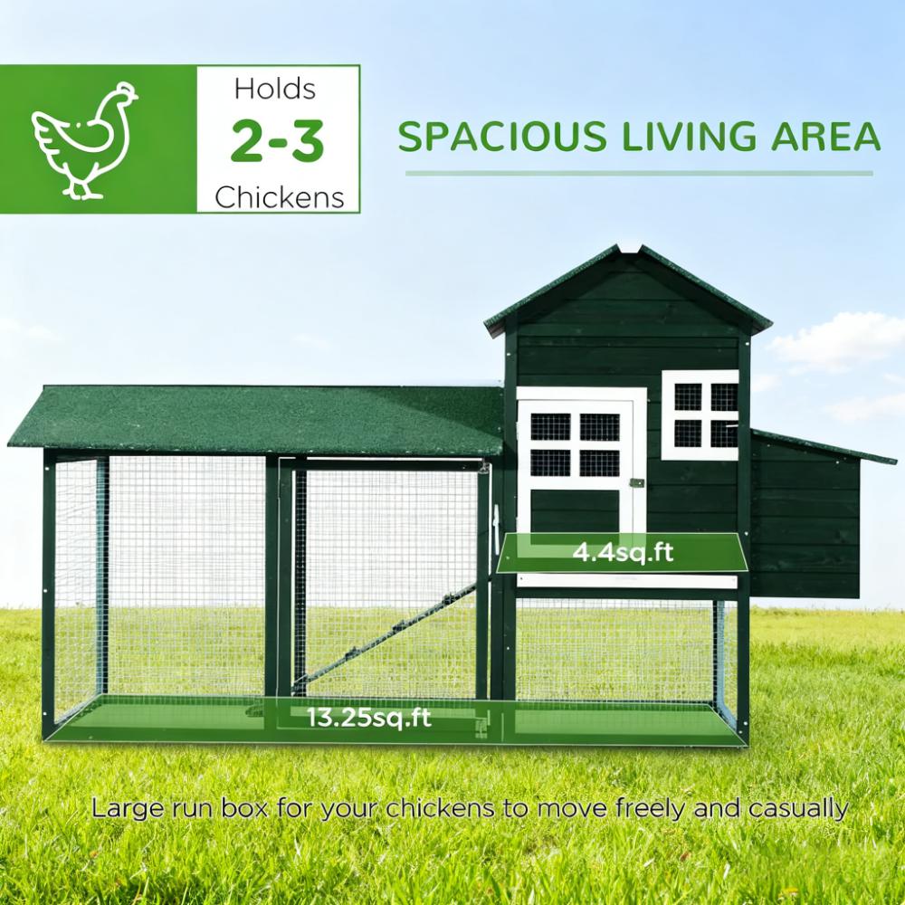 Chicken Coop Hen House Outdoor With Run Nesting Box, Asphalt Roof, Removable Tray Wooden