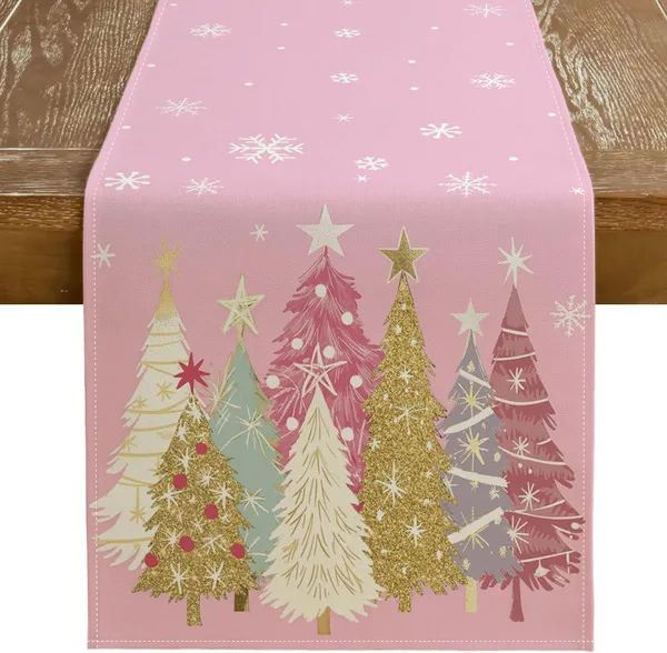 Christmas Table Runner 13×72 Inch, Xmas Trees Snowflakes Holiday Decorative Farmhouse Table Decoration For Kitchen Dinning, Indoor Outdoor Dinner Party Decor