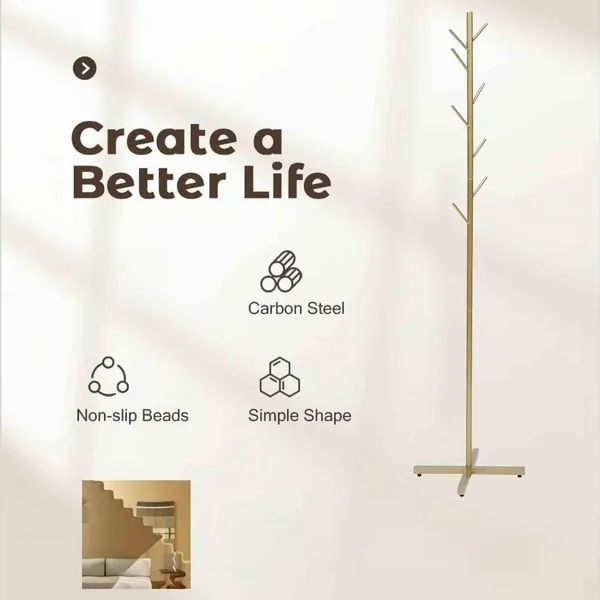Specification • United StatesDetailsSturdy Coat Rack: The metal coat rack stand is made of sturdy metal, it is not easy to deform and has stronger bearing capacity. • The gold smooth surface combine with white shelf makes the modern coat hanger stand not only suitable for various scenes, but also better integrated into any decoration style, perfect for entryway, hallway, hall, corner, living room, bedroom, office, bar, etc.