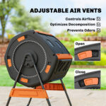 Compost Bin Outdoor, 53 Gal Dual Chamber Tumbling Composter with Adjustable Vents, BPA Free Tumbling Composter, Orange