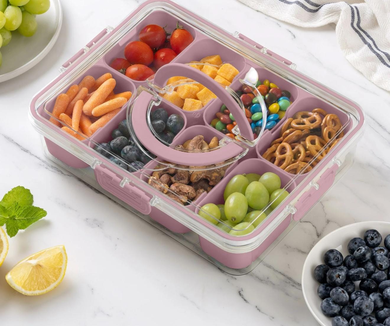 The divided compartments make it easy to store a variety of snacks, from candy and nuts to fruits and veggies. This snack box is your go-to for keeping everything neatly separated and ready to enjoy.