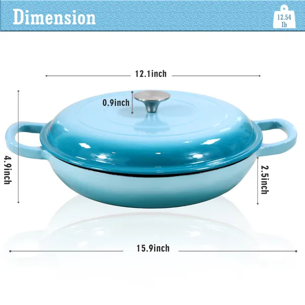 COOKWIN Cast Iron Casserole Braiser 3.8 Quart Heavy Duty Casserole Skillet With Lid And Dual Handles Porcelain Enameled Surface Cookware Pot