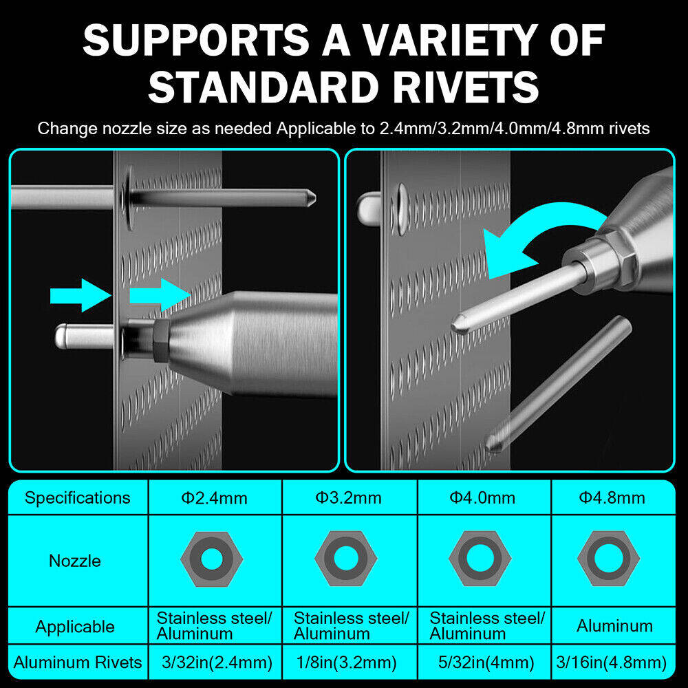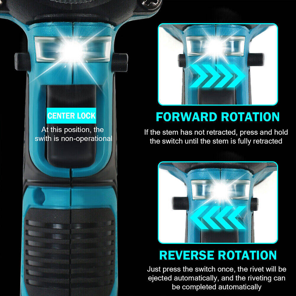 Cordless Rivet Gun For 18V-21V Batteries, Brushless Electric Riveter With Auto Forward Reverse, 4 Sizes Rivet Adapters, Includes Battery & Charger, Multi-Scene Application