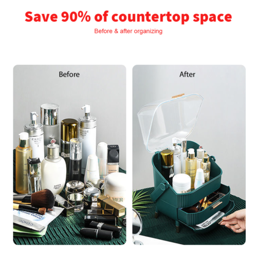 • Dustproof&Waterproof&Portable:The crystal-clear cover keep your cosmetics away from dust & water. Equipped with smooth&rotated handle, this makeup caddy can be carried and moved conveniently while traveling, especially on car travel.