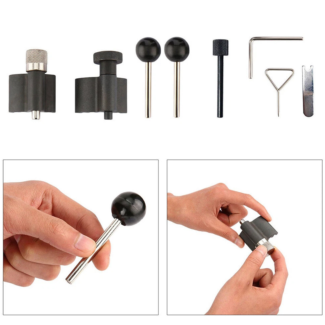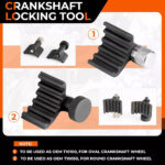 • 4. Includes 7 tools including crankshaft locking tool, camshaft timing pin, tensioner locking tool, tensioner locking pin, etc. Comes with a plastic tool box for easy storage and transportation.