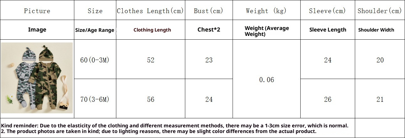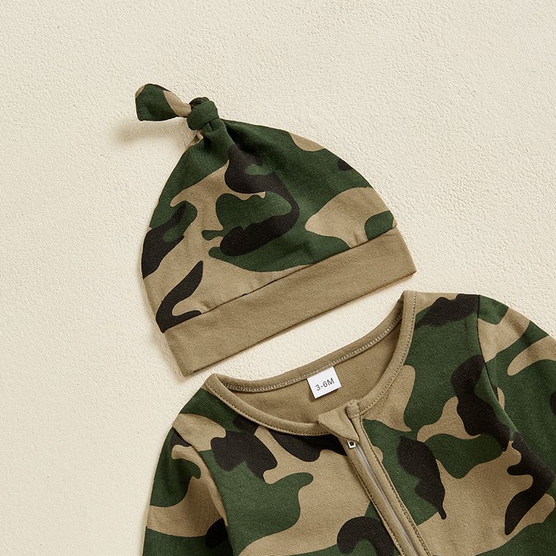 Creative Camouflage Print Zip-Up Baby Onesie And Hat Set is designed for style, comfort, and everyday use.