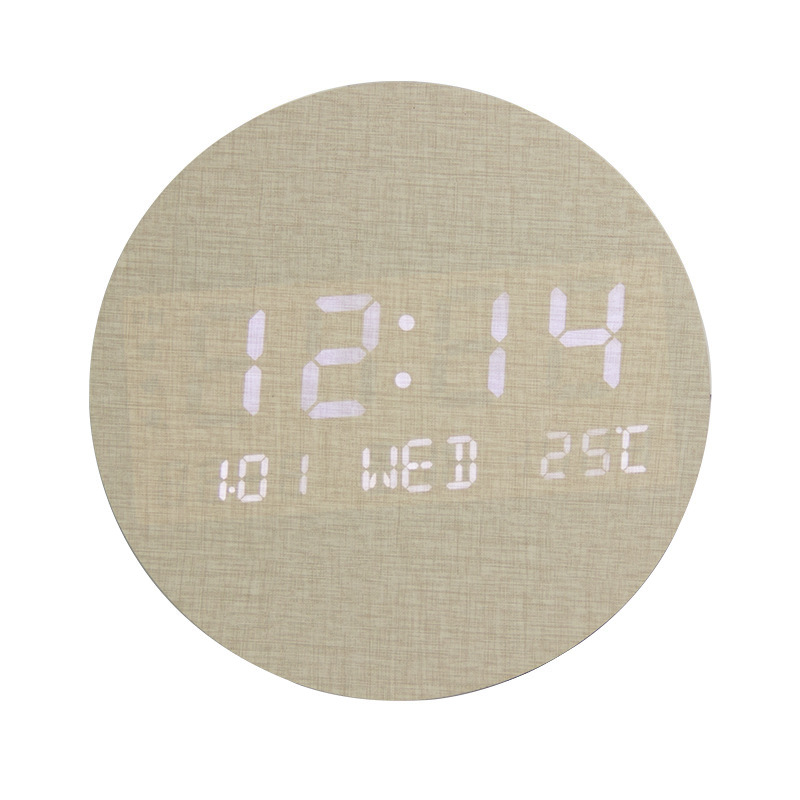 Creative LED Wooden Round Wall Clock Fashionable Electronic Clock
