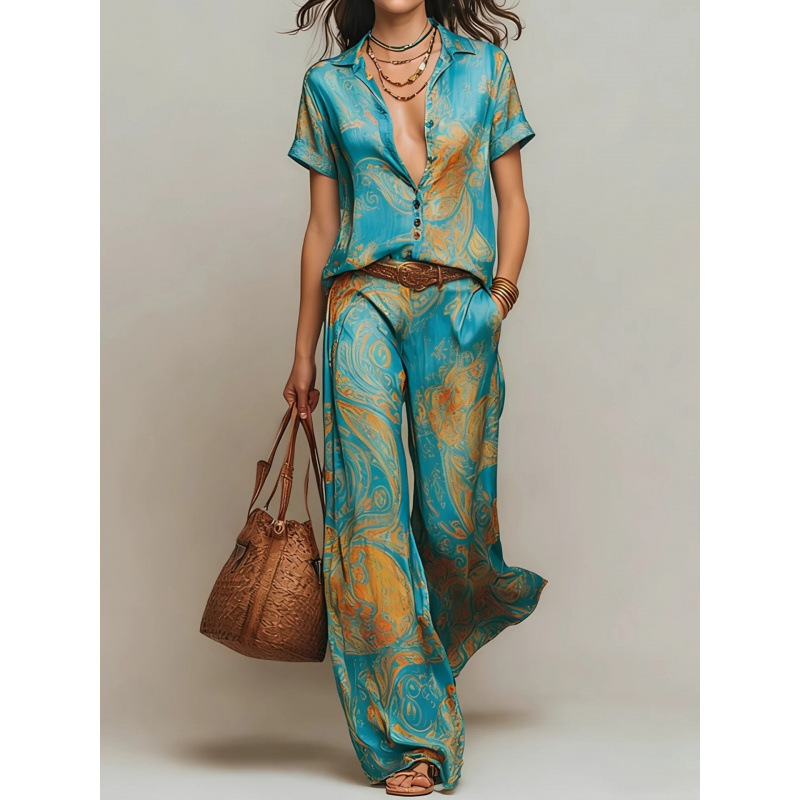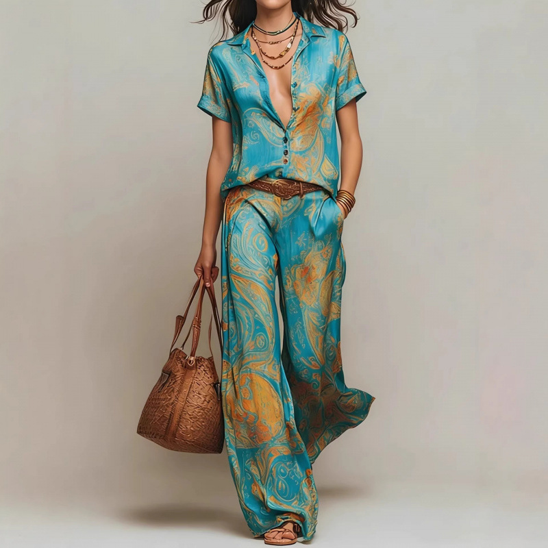 Cross-border Amazon Fashion Casual Elegant Resort Two-Piece Set