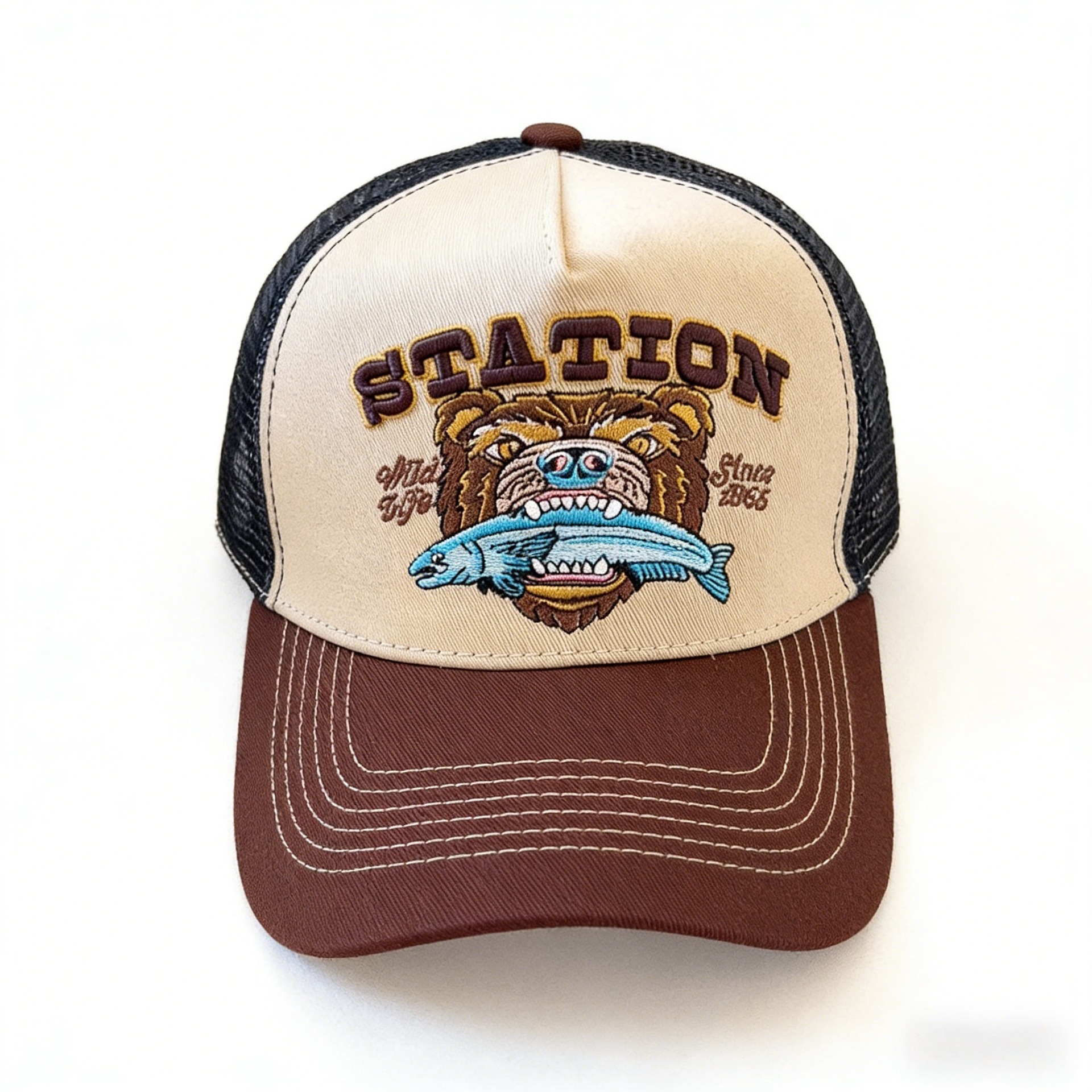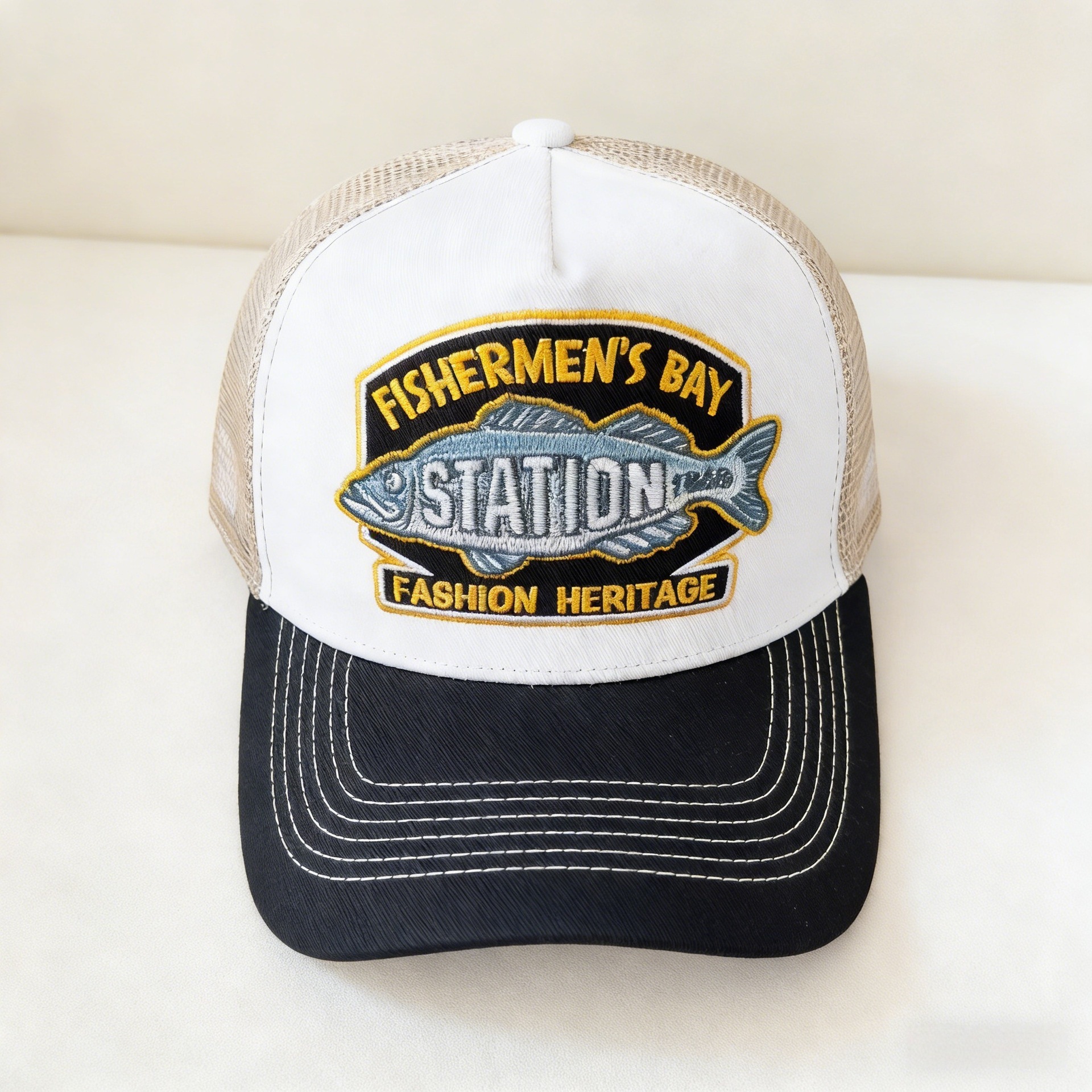 Fish White Black Brim-Adjustable