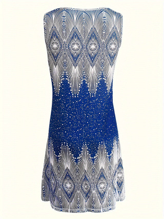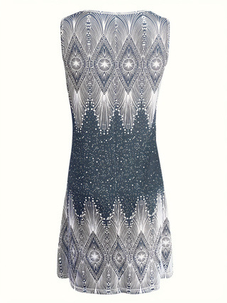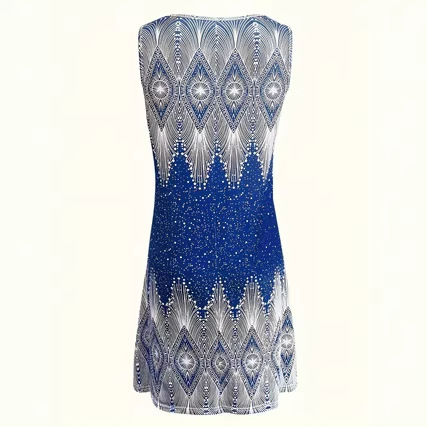 Cross-border European And American Amazon New Summer Womens Loose V-Neck Sleeveless Tank Top Printed Dress