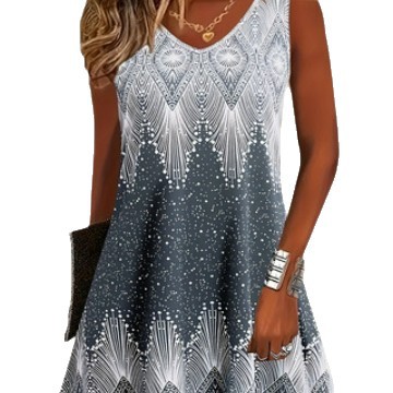 Cross-border European And American Amazon New Summer Womens Loose V-Neck Sleeveless Tank Top Printed Dress is designed for style, comfort, and everyday use.