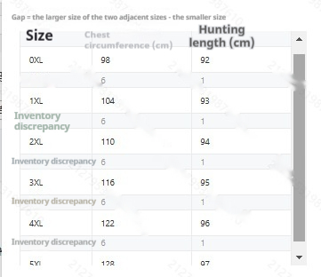 • 0XL, 1XL, 2XL, 3XL, 4XL, 5XL