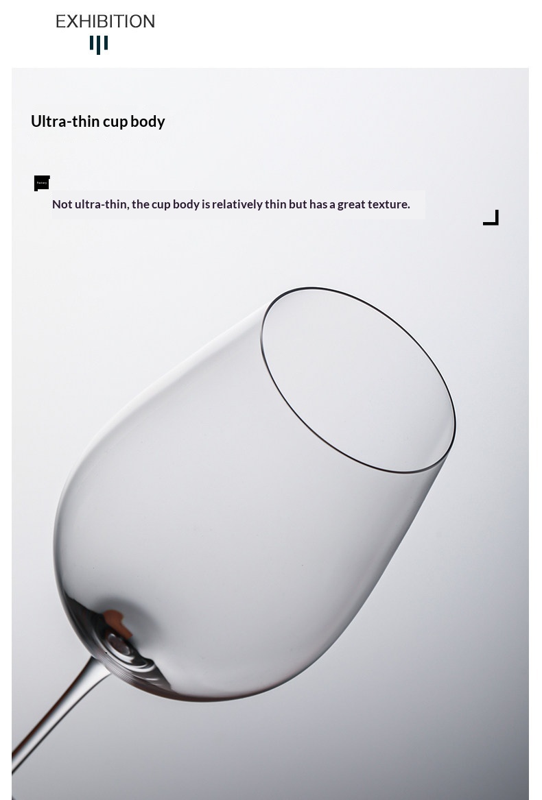 • Burgundy Wine Glass 810 ml, Bordeaux Wine Glass 400 ml, Bordeaux Wine Glass 670 ml, 370 ml (suitable for both red and white wine as well as champagne)