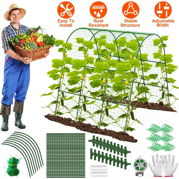 Cucumber Trellis For Raised Bed Arch Garden Trellis For Climbing Plants Vine Vegetables Fruit Flower Grape U-Shaped Frame With Climbing Net Tunnel Plant Stand For Garden Raised Bed