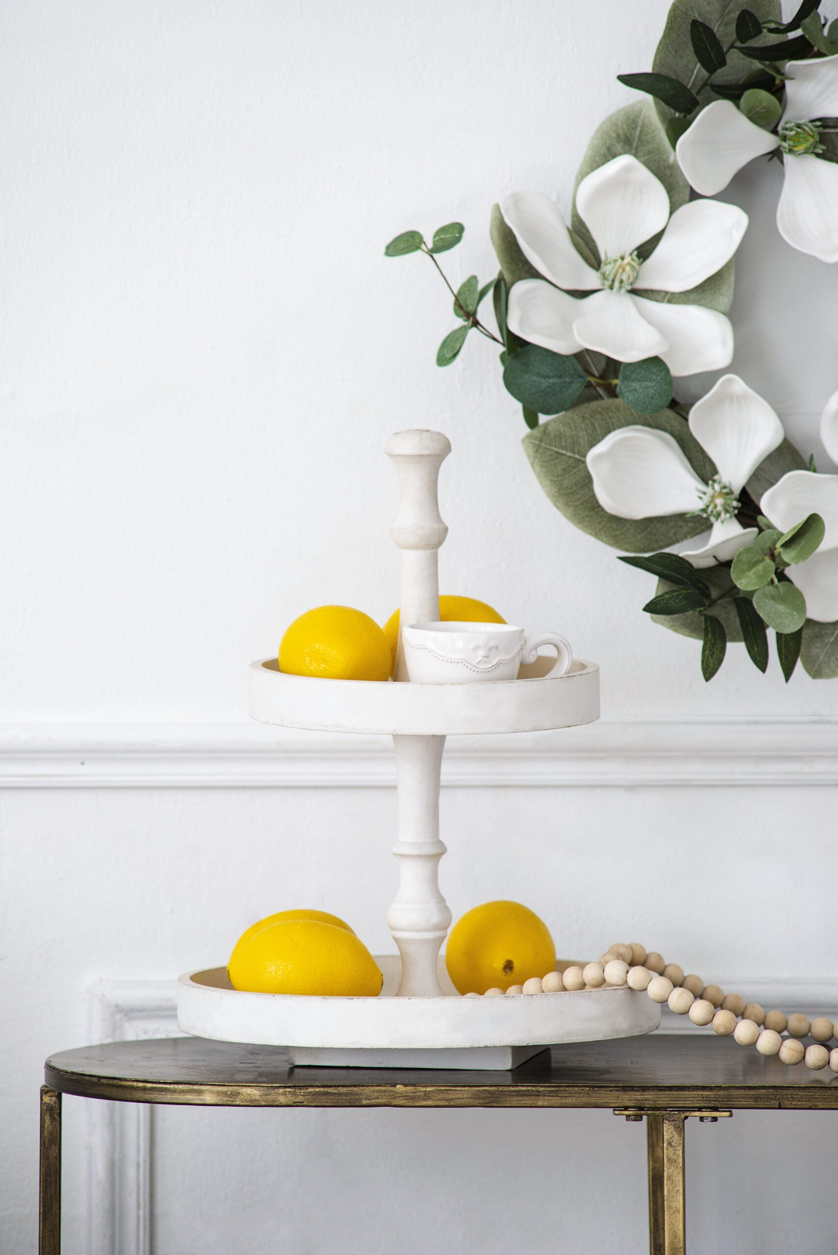 D11.8×15.4 Two- Tiered Round Wooden Tray White is designed for style, comfort, and everyday use.